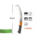 Piła została wyposażona w ostrze wykonane z wysokiej jakości stali hartowanej typu SK5. Jego wygięty kształt oraz długość 32 cm zapewniają szybkie i łatwe cięcie zarówno grubych, jak i cienkich gałęzi. Praktyczne zakończenie w postaci haka zapobiega zsuwaniu się narzędzia podczas pracy.