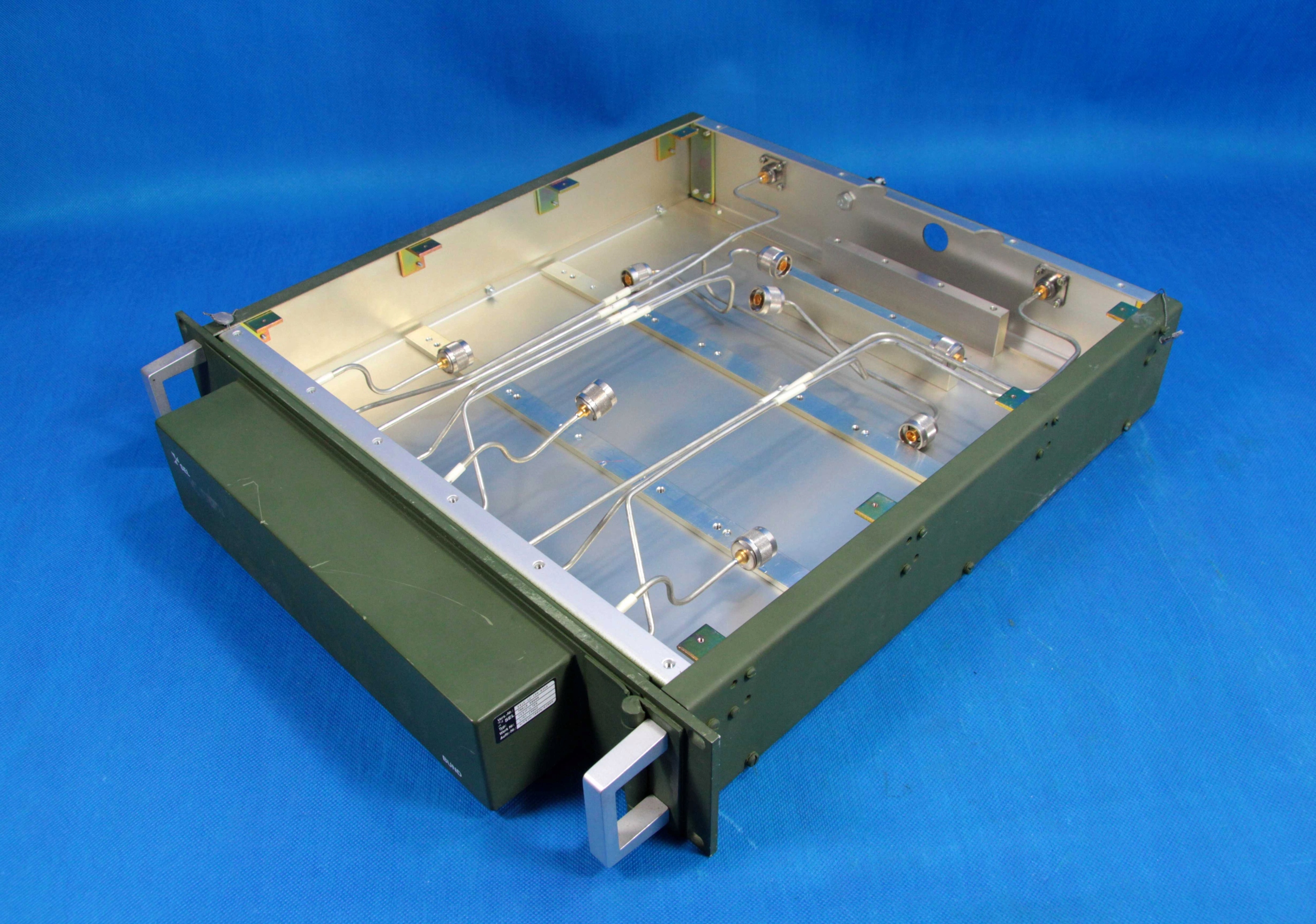 Wewnątrz znajduje się osiem wtyczek N zalutowanych na linii półsztywnej.