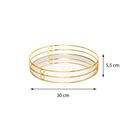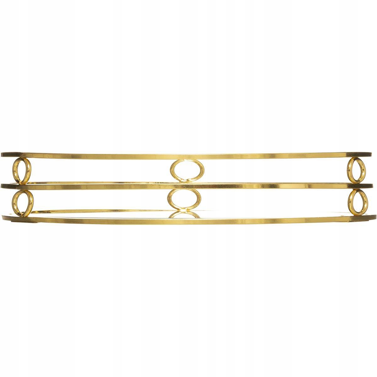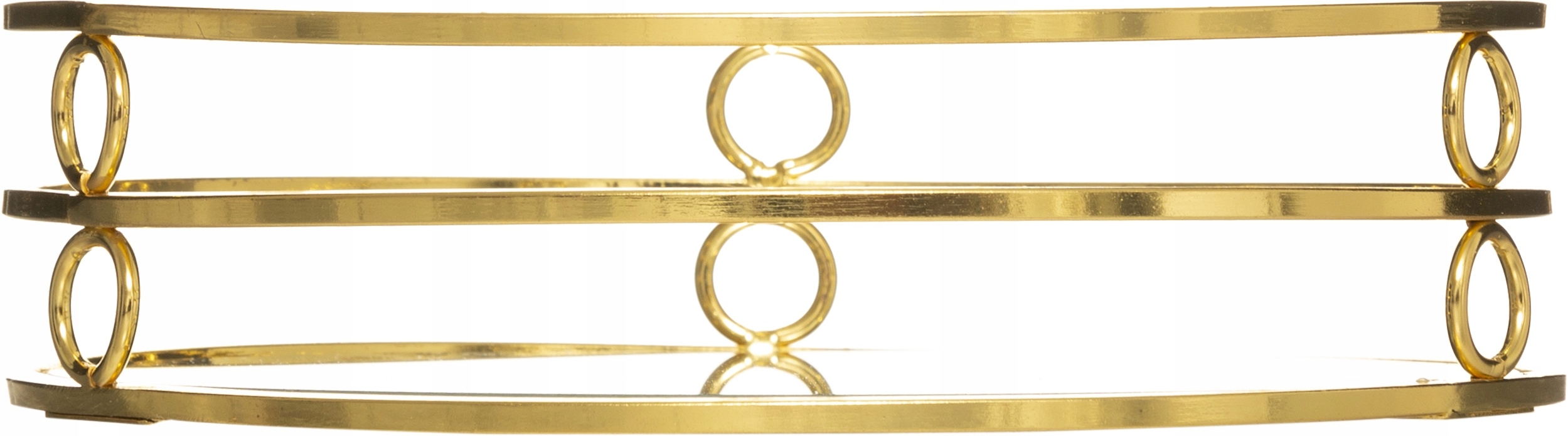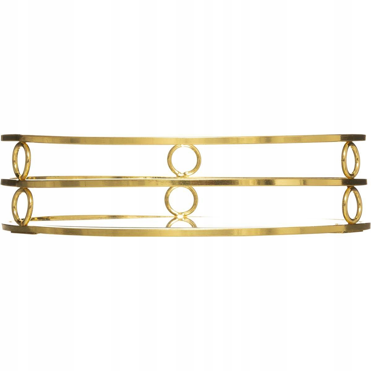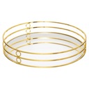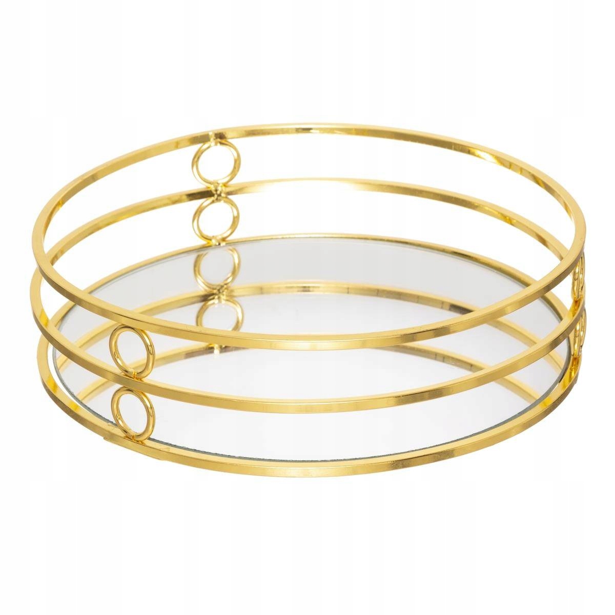 Komplet tac wykonanych z polerowanego na lustrzany połysk złotego metalu oraz tafli lustra. Efektownie połyskująca i odbijająca światło powierzchnia sprawia, że będą one wyróżniającym się dodatkiem dekoracyjnym. Tace posłużyć mogą między innymi do serwowania ciasta bądź owoców. Sprawdzą się także jako podstawka lub patera na świece.
