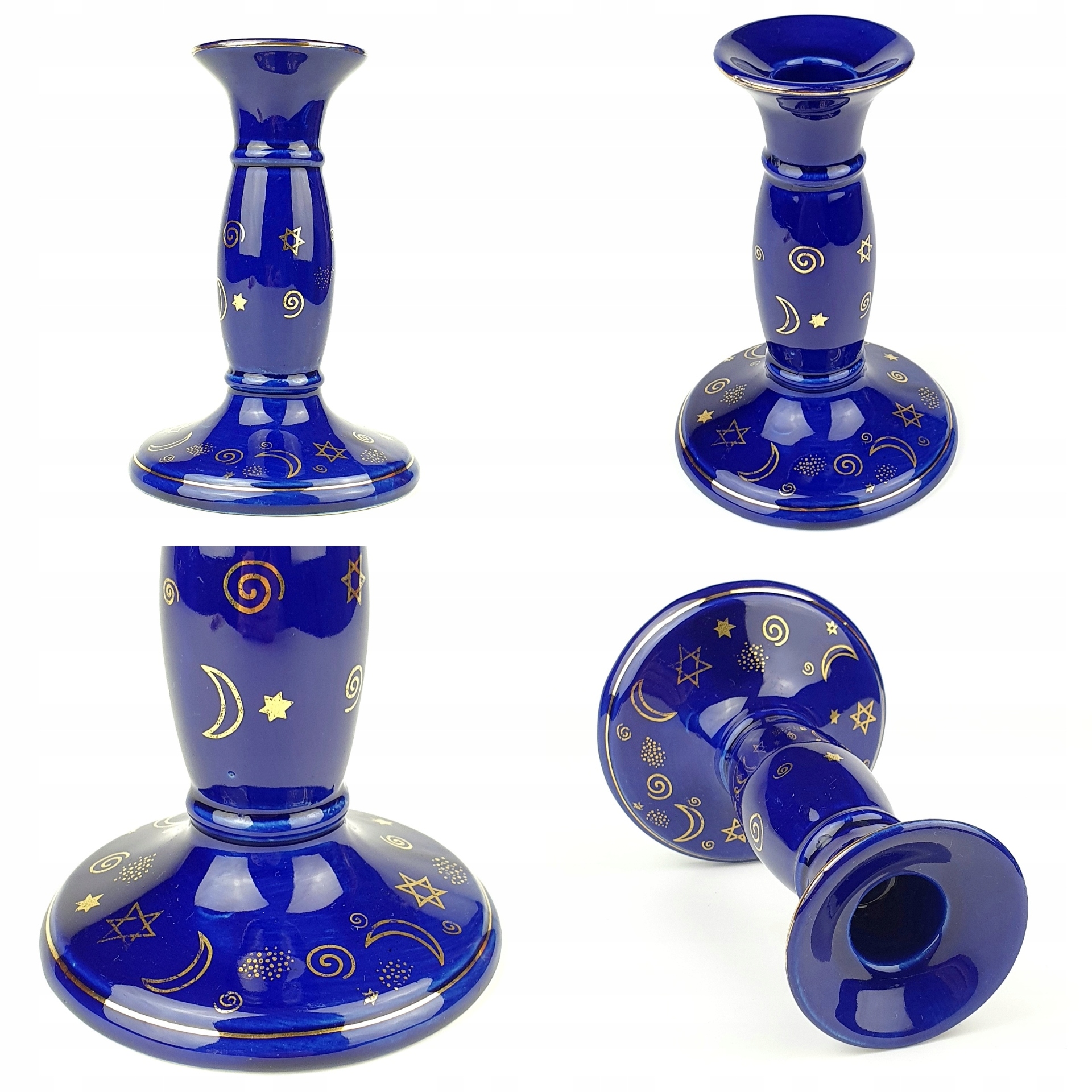 PIĘKNY ŚWIECZNIK W KOLORZE KOBALTU .