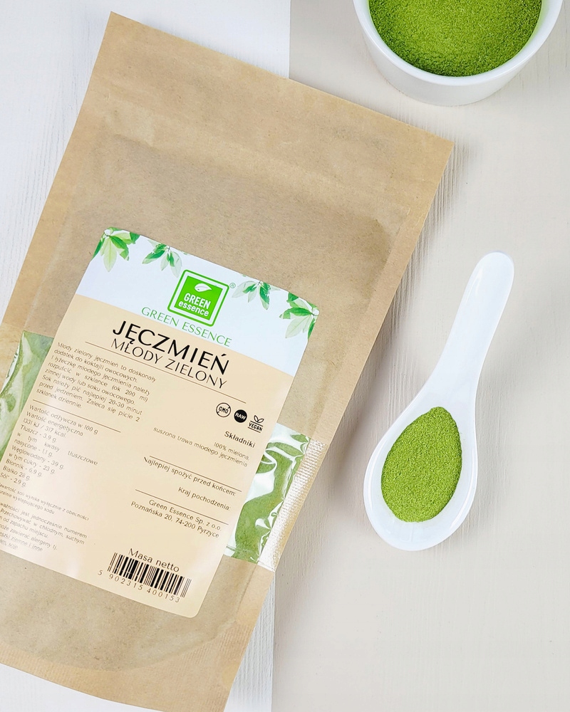 ☝️ 1 łyżeczkę młodego jęczmienia należy rozpuścić w szklance (ok 200 ml) zimnej wody lub soku owocowego. Sok należy pić najlepiej 20-30 minut przed jedzeniem.