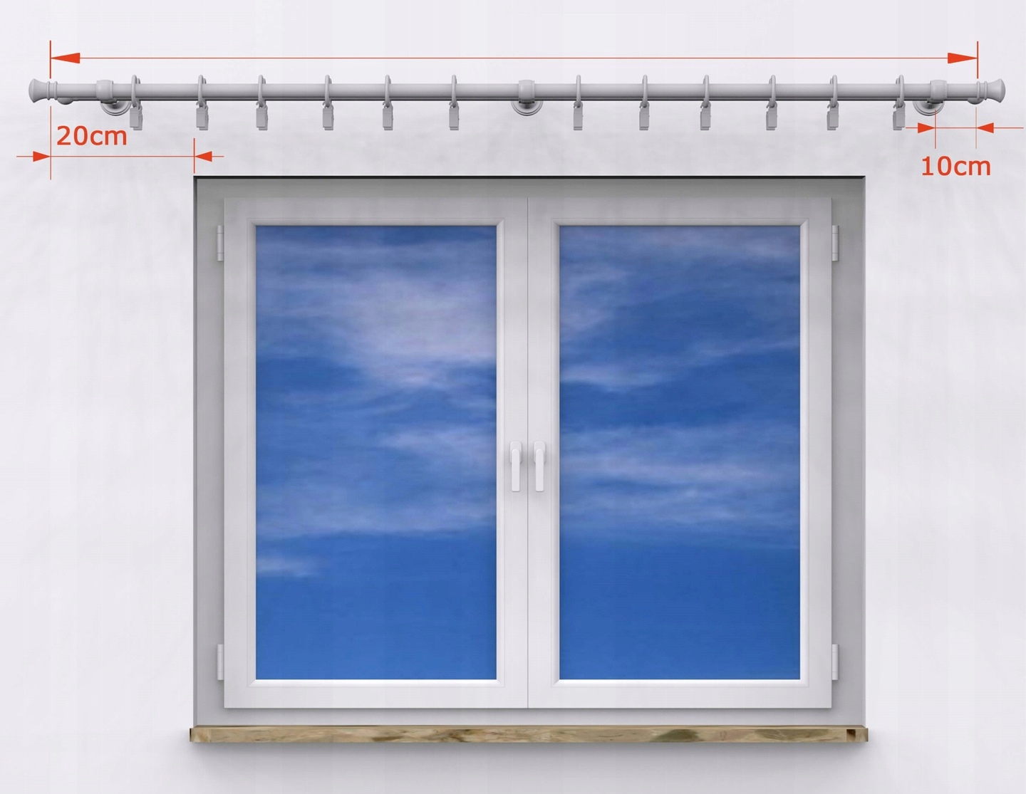 W celu doboru odpowiedniej długości rurki karnisza, zaleca się aby była ona szersza od wnęki okiennej minimum o 40 cm (20 cm na każdą stronę).