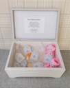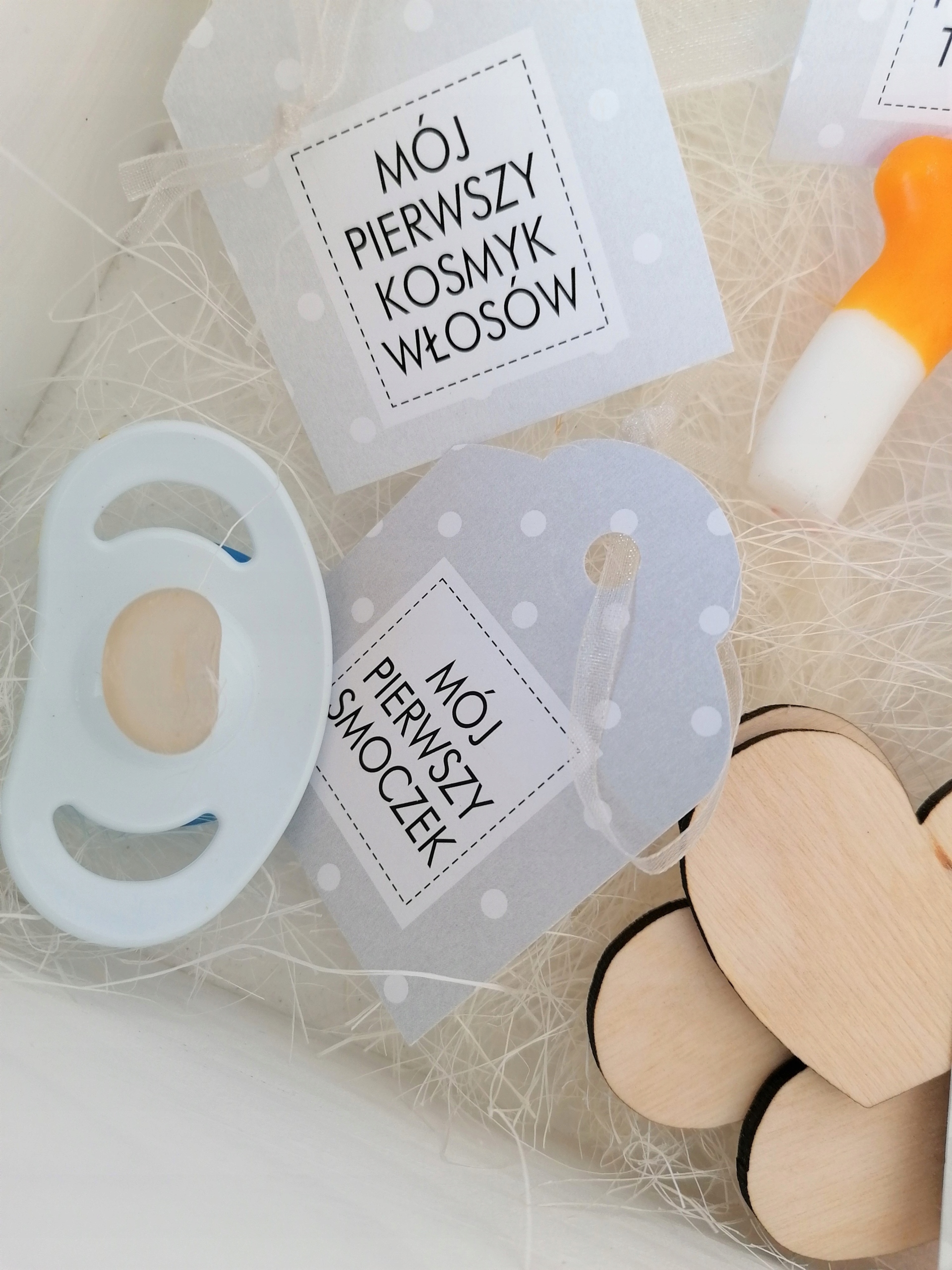 UWAGA: wyposażenie pudełka nie zawiera : smoczka, świeczki i bucika- są to rekwizyty na potrzeby sesji zdjęciowej .