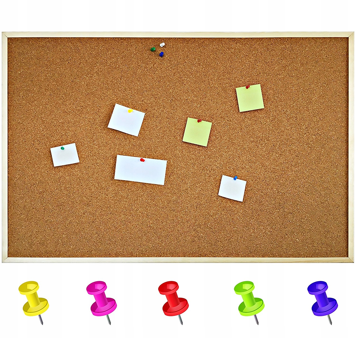 PINEZKI W ZESTAWIE - W zestawie znajduje się 5 wielokolorowych pinezek, dzięki czemu nie trzeba kupować ich osobno. Korek, z którego zrobiona jest tablica, jest połączony z naturalnym, samoregenerującym się materiałem, który w większym stopniu eliminuje nieestetyczne dziurki.