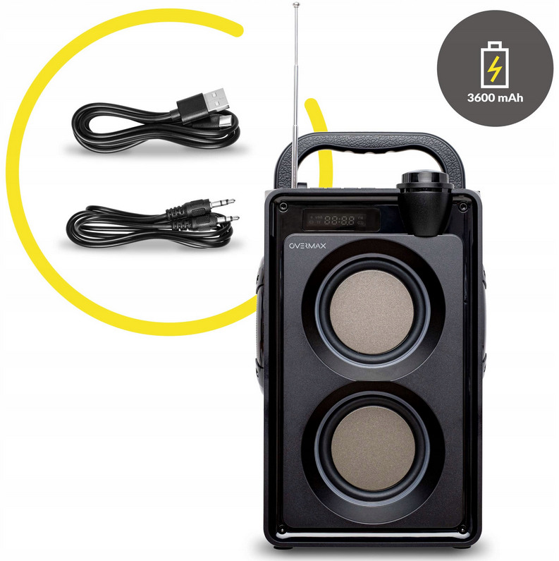 Głośnik bezprzewodowy Overmax Soundbeat 5.0 został wyposażony w dwa wysokiej jakości głośniki o łącznej mocy 20 W RMS. Głośniki wsparte są pasywnymi radiatorami, które nadają głębię niskim tonom, zapewniając mocne basowe uderzenie.