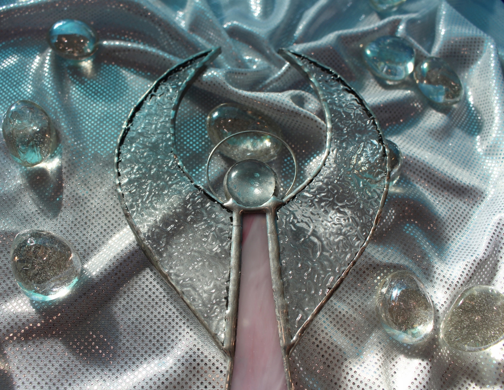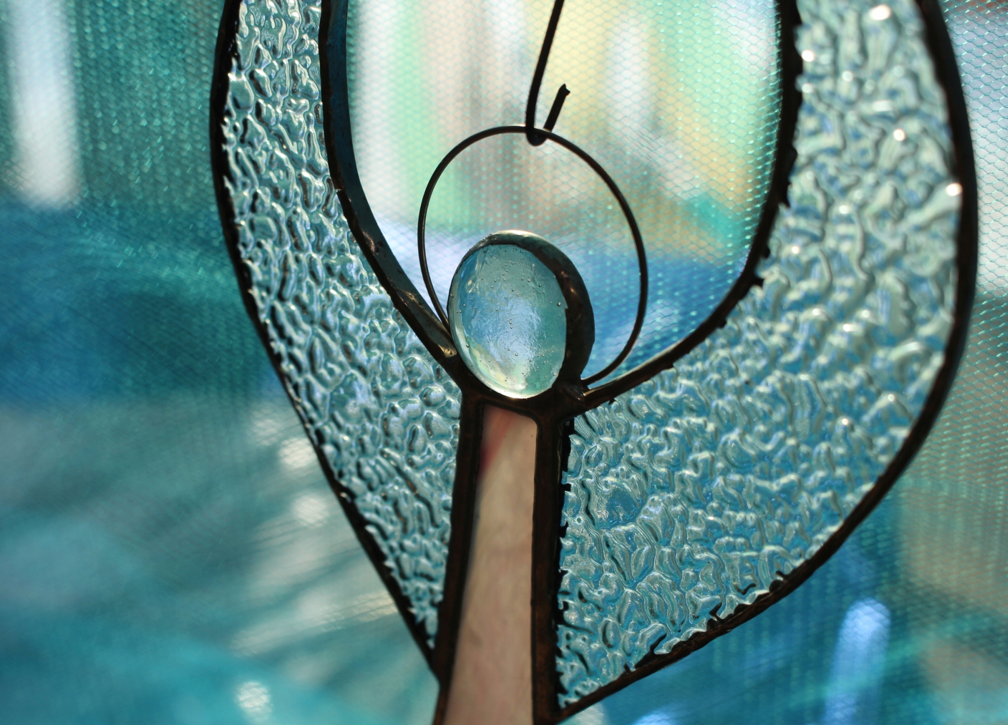 Szkło wycinane jest ręcznie i połączone ze sobą miedzią oraz cyną. Skrzydła wykonane są z bezbarwnego, karbowanego szkła, sukienka zaś z barwionego w masie szkła, które nie jest malowane. Specyficzne ukształtowanie i wybarwienie szkła powoduje, że nie istnieją dwa identyczne egzemplarze.