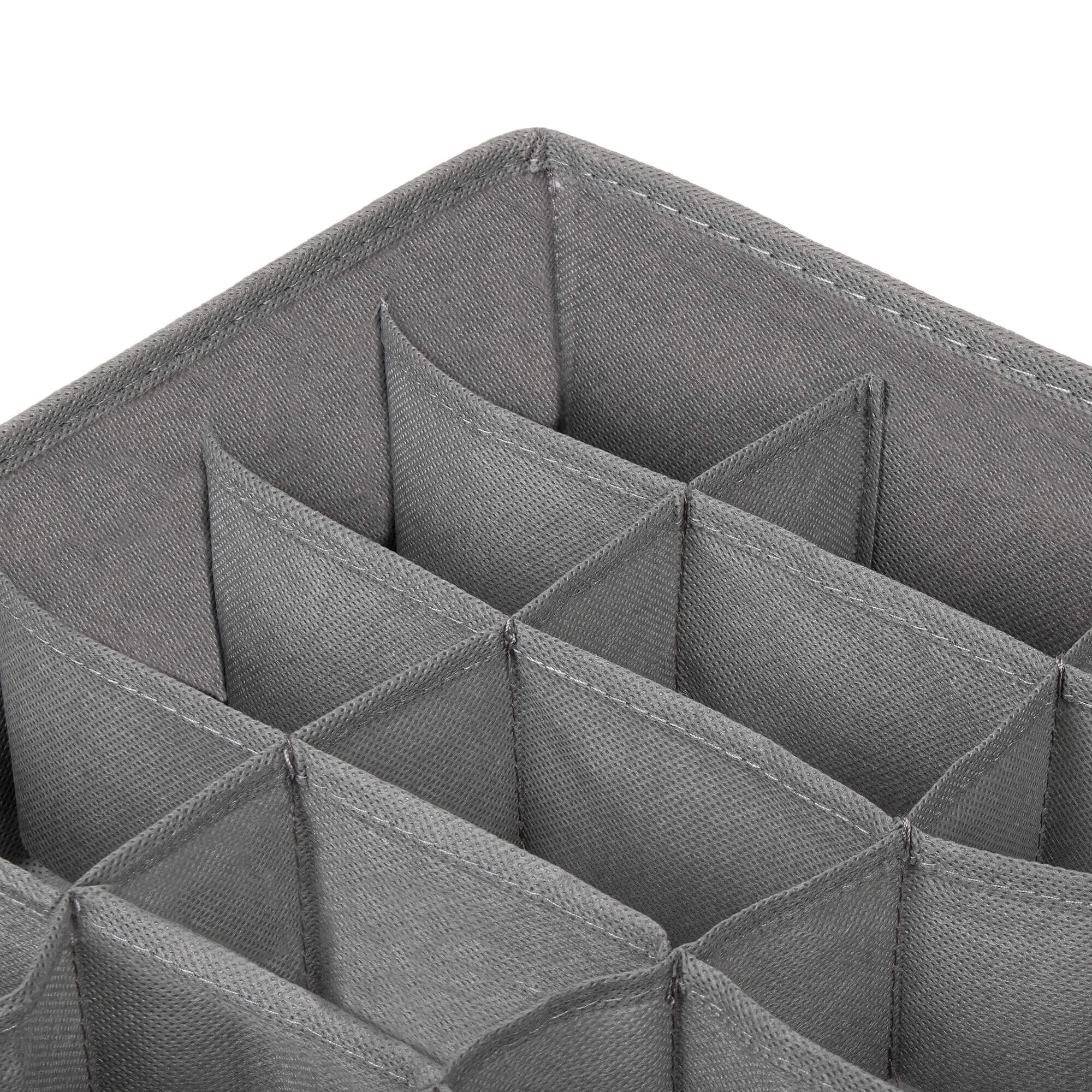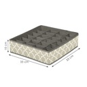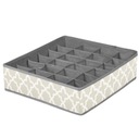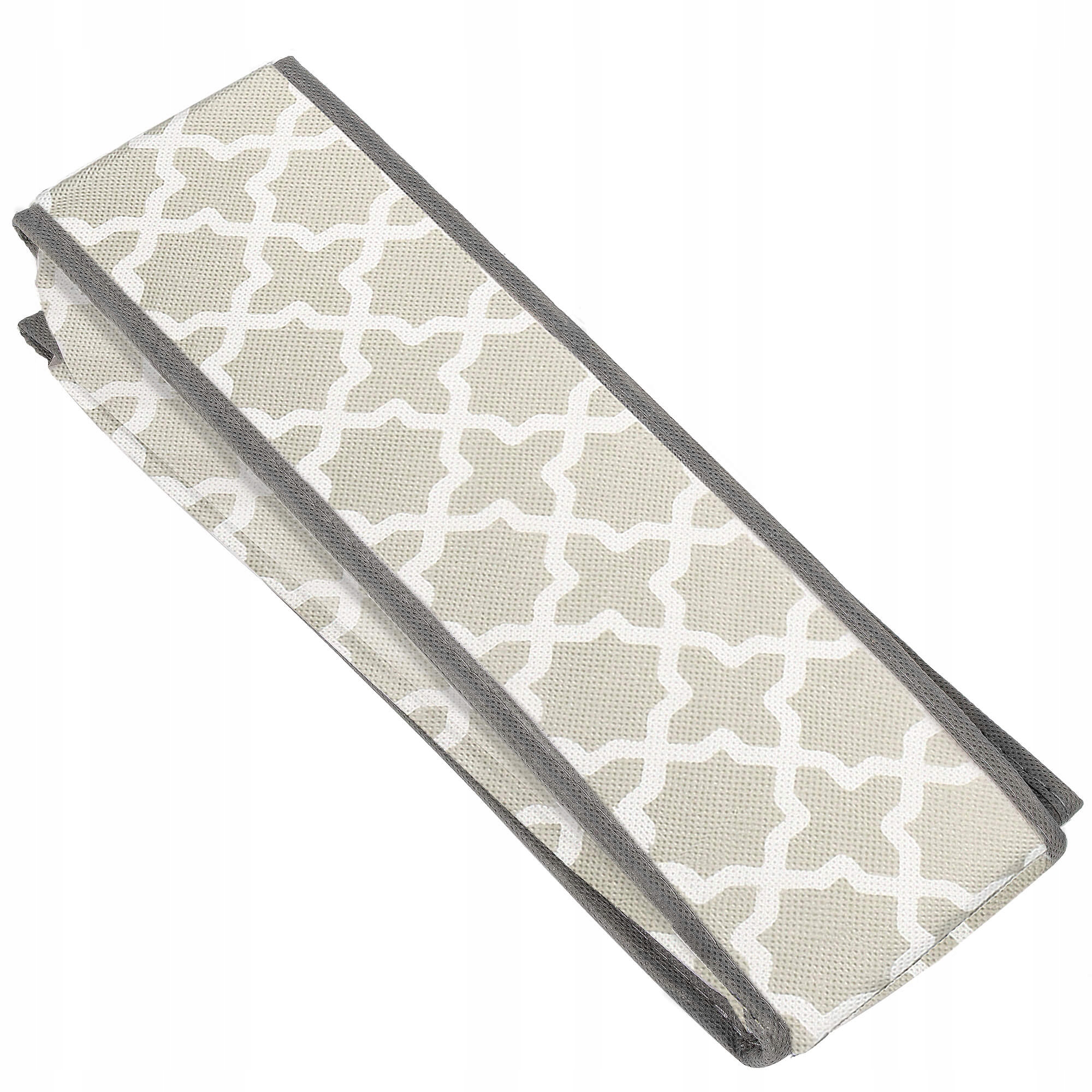 Produkt wykonany z trwałej włókniny, co sprawia, że jest niezwykle lekki. Usztywnione boczne ścianki organizera sprawiają, że konstrukcja jest stabilna i nie odgina się. uniwersalna, klasyczna kolorystyka w neutralny sposób uzupełni wnętrza szaf i komód. Dzięki wszytemu suwakowi, organizer jest bardzo łatwy w rozkładaniu i składaniu.