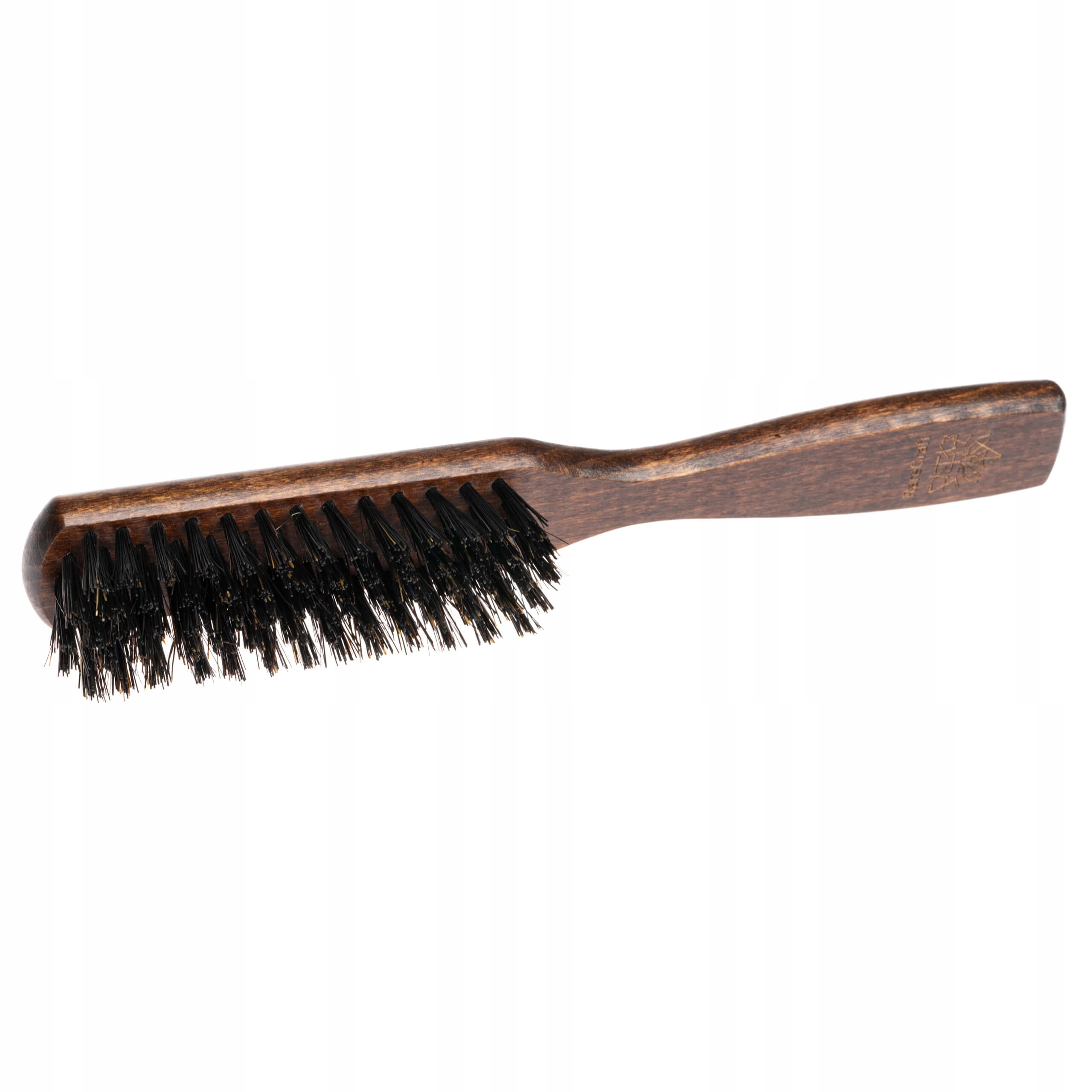 Polska firma RareCraft przedstawia szczotkę do brody w eleganckim drewanianym ciemnym kolorze z naturalnym włosiem z dzika.