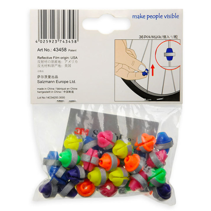 Wielokolorowe kulki odblaskowe pasują do każdych szprych rowerowych. Posiadają certyfikację 3M - produkt zgodny z CE EN13356. Nie tracą swoich właściwości odblaskowych podczas użytkowania, są wodoodporne.