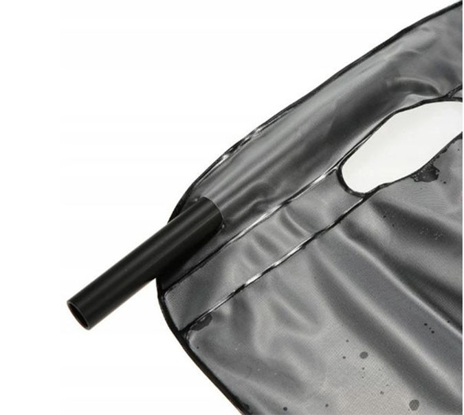 Przenośny prysznic firmy HH Poland do zastosowania wszędzie tam gdzie nie ma bieżącej wody, np: na wycieczce, obozie, kempingu czy działce. Worek prysznica jest wykonany z wytrzymałego tworzywa, a dzięki czarnemu pokryciu dobrze pochłania światło i wystawiony na słońce szybko ogrzewa zgromadzana w nim wodę. Tworzywo jest nieprzemakalne, a szczelne korki i zawór sprawiają, że nawet napełniony wodą worek można bezpiecznie przechowywać np. w torbie, lub przewieźć w aucie. Prysznic można zawiesić w dowolnym miejscu: na gałęzi lub wieszaku. Po złożeniu zajmuje bardzo mało miejsca, co jest idealną alternatywą dla podróżników.