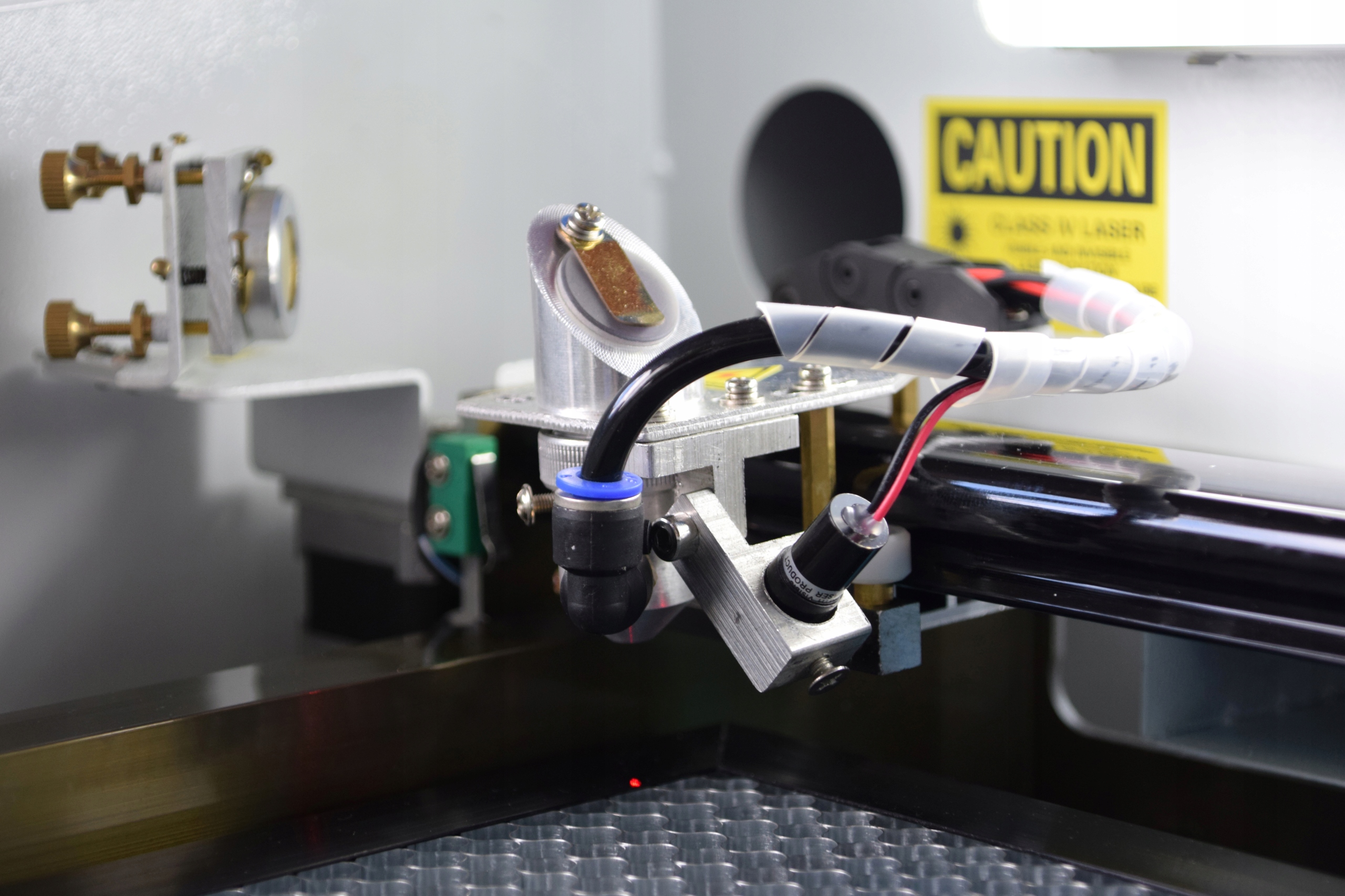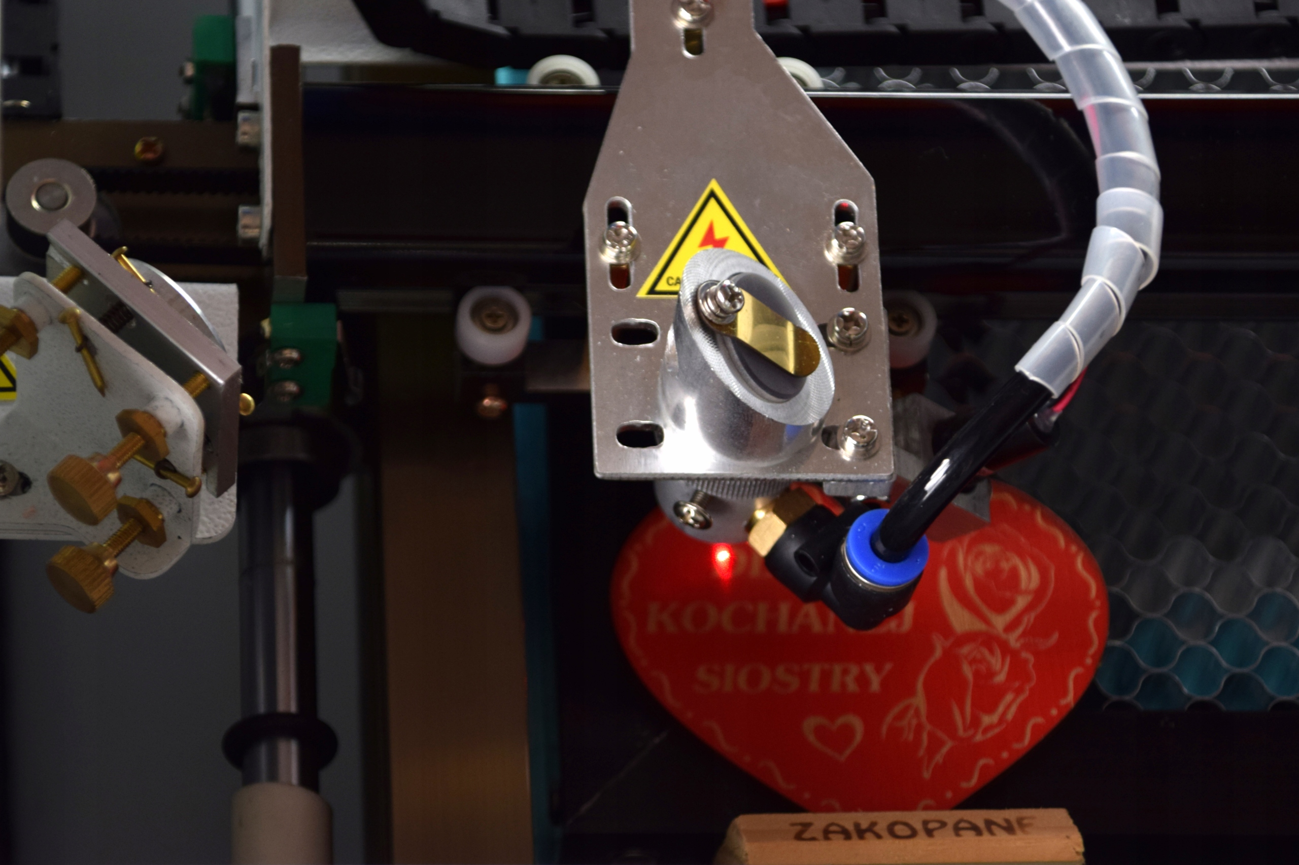 Do naszego plotera dołożyliśmy również funkcję "Red-Dot" - czyli czerwoną plamkę lasera - wskaźnik, który pokazuje gdzie uderzy wiązka właściwego lasera. Funkcja bez której praktycznie nie da się precyzyjnie pracować na urządzeniu.
