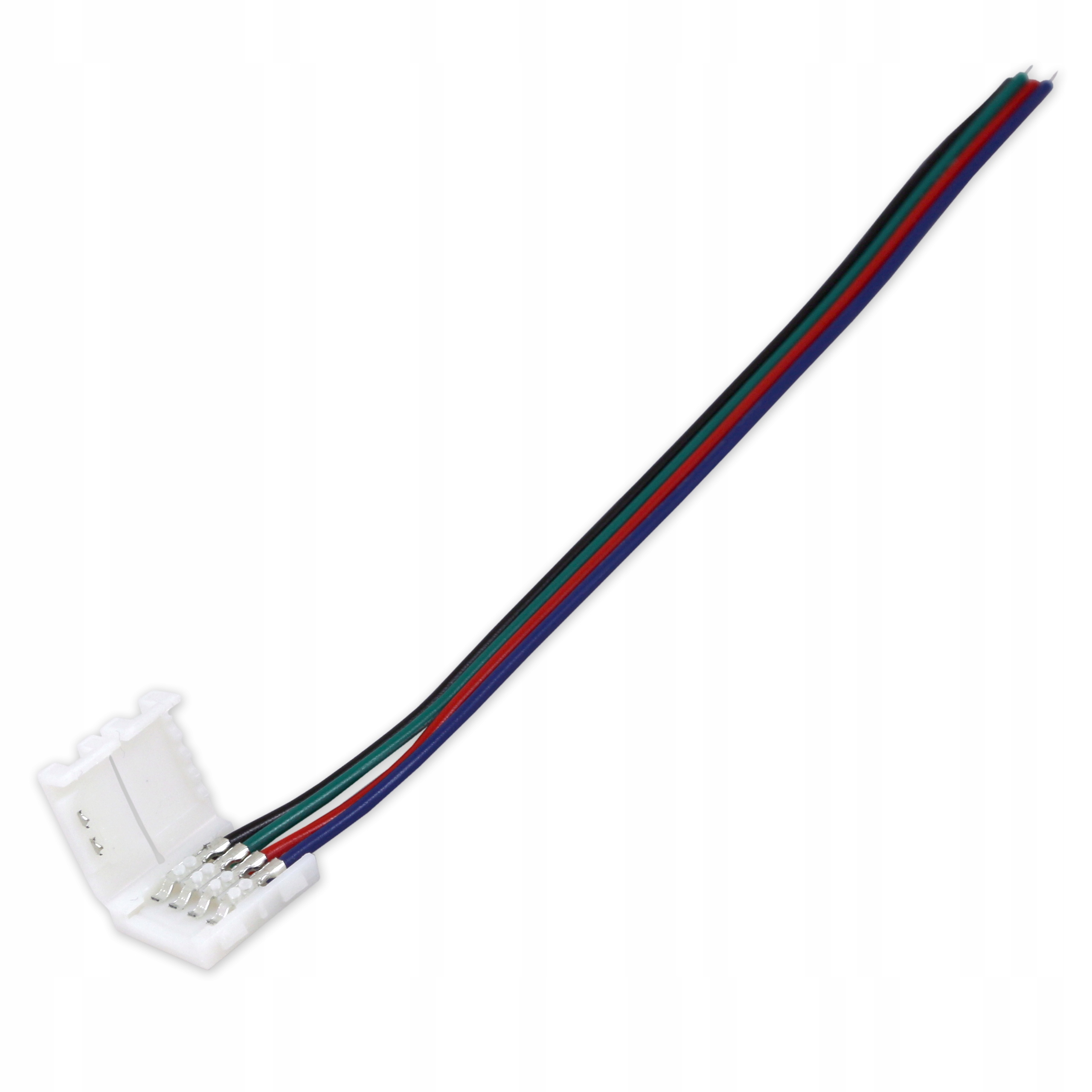Szybkozłączka której celem jest łączenie 2 odcinków taśmy LED RGB o szerokości 10mm bez używania jakichkolwiek narzędzi. Aby połączyć taśmy wystarczy wsunąć taśmę i zamknąć zatrzask (klips).