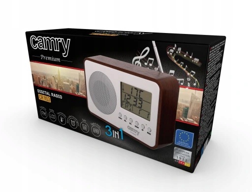 Nowoczesne radio cyfrowe CAMRY Premium CR 1153 posiada klasyczny wygląd, z modnym drewnianym szlifem projektantów. Znakomicie wkomponuje się w większość pomieszczeń domowych i biurowych. Sprawdzi się również w kuchni czy na działce, gdyż posiada specjalną powłokę zabezpieczającą, która chroni nie tylko przed kurzem lecz również przed tłuszczem i drobnym zachlapaniem wodą. Posiada zegar z dużym i czytelnym wyświetlaczem LCD. Dodatkowo radio CR 1153 posiada funkcje budzika, który może obudzić nas dźwiękami ulubionej audycji radiowej lub zwykłym alarmem. Radio jest również wyposażone w termometr i kalendarz. Są to niezwykle przydatne na co dzień funkcje. Zasilane jest sieciowo lub bateryjnie. Projektanci marki CAMRY zadbali o każdy szczegół. To wszystko sprawia, że radio cyfrowe CAMRY jest znakomite dla Ciebie i Twoich bliskich. Radio posiada funkcję automatycznego wyłączania która jest fabrycznie ustawiona na 10 minut. Ten czas można zmienić w każdym momencie aż do 1.5 godziny.