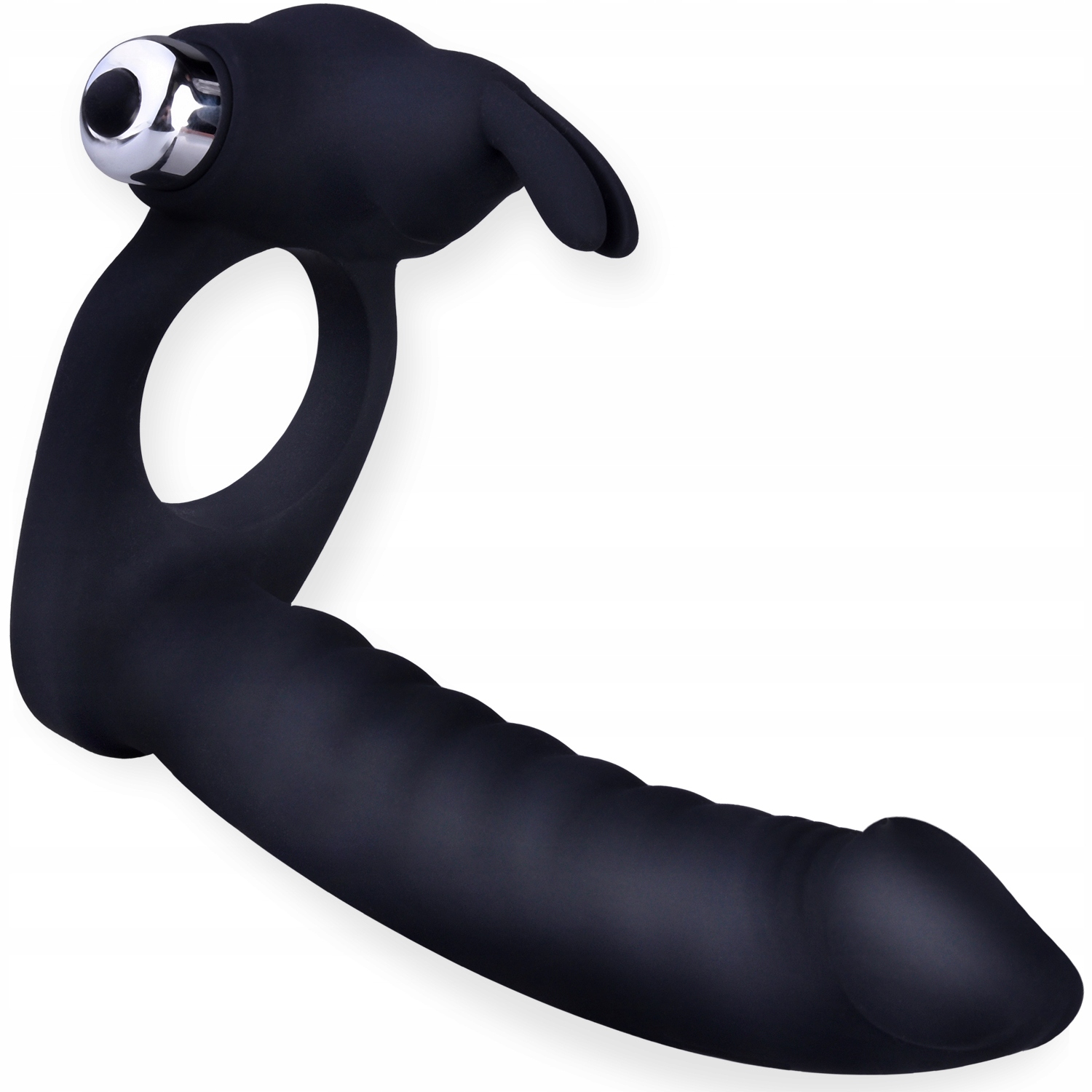 Wibracyjny pierścień na penisa z sondą analną, dzięki któremu zadowolisz swoją partnerkę dając jej orgazm życia. Pierścień z penisem analnym zwielokrotni Twoje atuty seksualne, a dzięki wibratorowi umiejscowionemu w stymulatorze zamieni Cię w erotycznego wirtuoza. Po założeniu zestawu na swojego członka wyposażysz się w smukłego penisa analnego oraz pieszczącego łechtaczkę króliczka. Produkt wykonany został z silikonu o klasie medycznej, jest bezpieczny w użyciu oraz wodoodporny. Wibrator w króliczku posiada aż 7 ciekawych funkcji pulsacji, z łatwością dopasujecie odpowiedni program dla siebie.