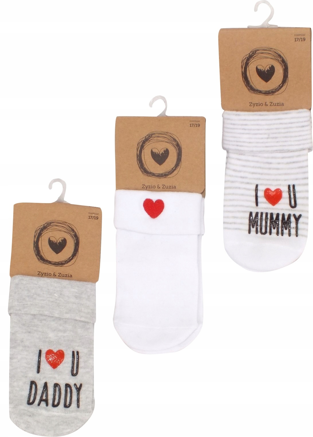 -białe w szare paski I love U Mummy