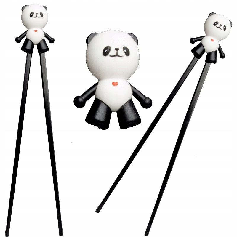 Opis: Czarne pałeczki dla początkujących z motywem pandy. Pałeczki połączone są ze sobą, dzięki temu osoba początkująca będzie mogła w znacznie prostszy sposób opanować spożywanie potraw pałeczkami w prawdziwym japońskim stylu.