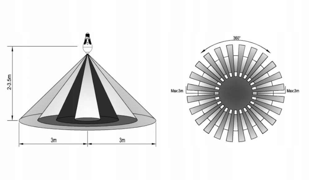 ✅ Duży zasięg detekcji i kąta widzenia czujnika ruchu - Ø6 metrów, 360°