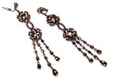 Klipsy brązowe, długie wykonane ręcznie z brązowych szlifowanych kryształów przez producentów Jablonexu (Jablonex to znana od kilkuset lat czeska firma biżuteryjna słynąca z doskonałej jakości i wzornictwa ), modna forma barokowa. Polecamy na karnawał i studniówki.