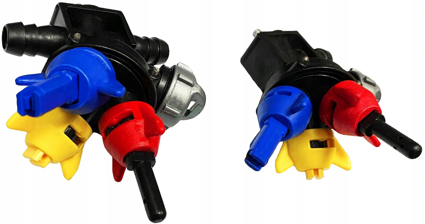 Posiadamy na sprzedaż głowice opryskowe 3-pozycyjne mocowane na śrubę z zaworkiem bocznym na wąż 12,5 mm kompletna.