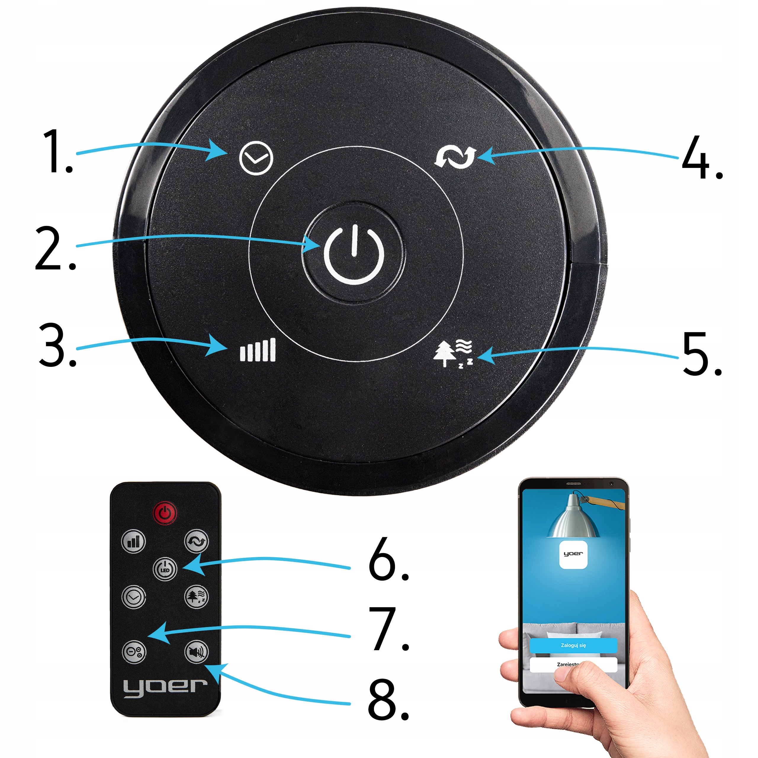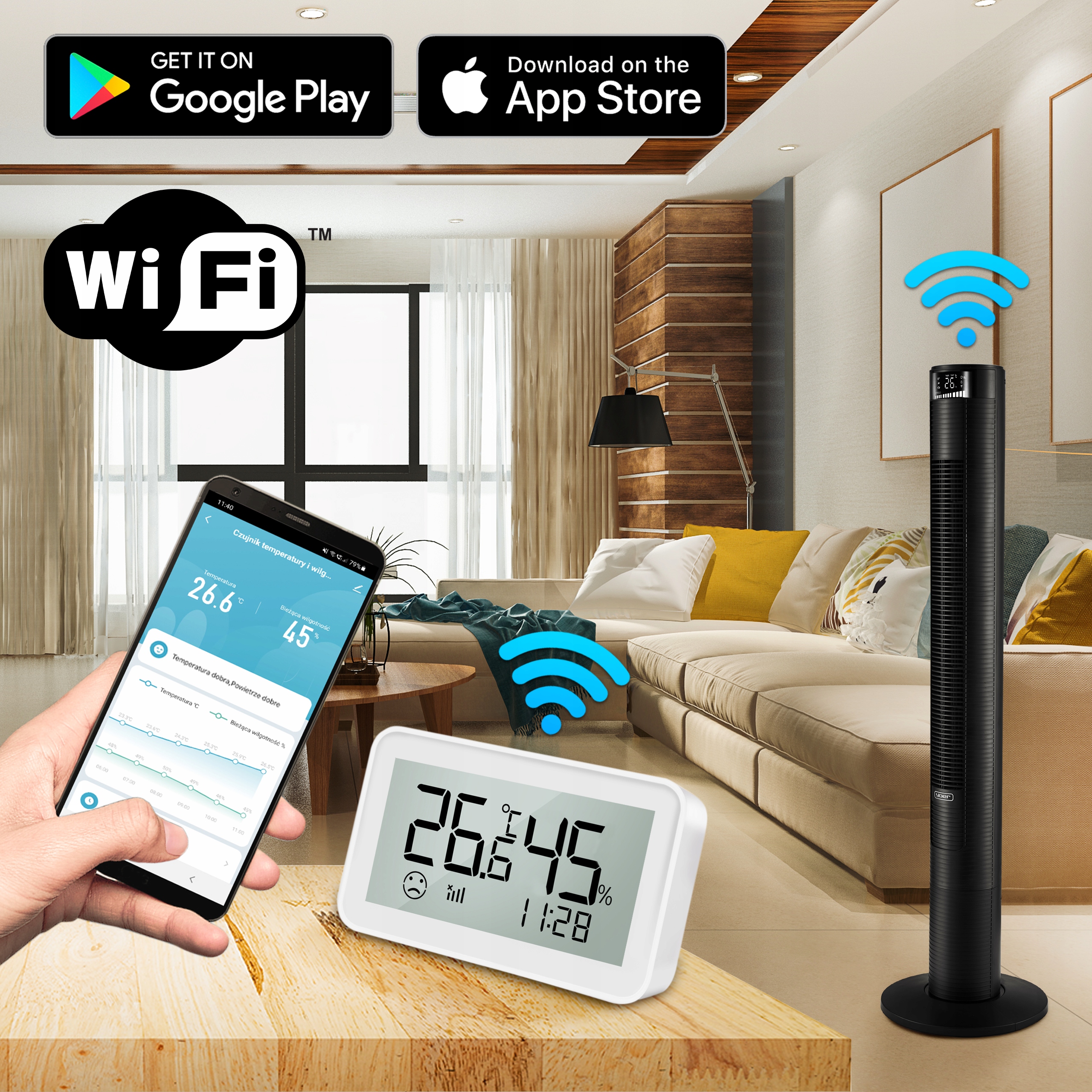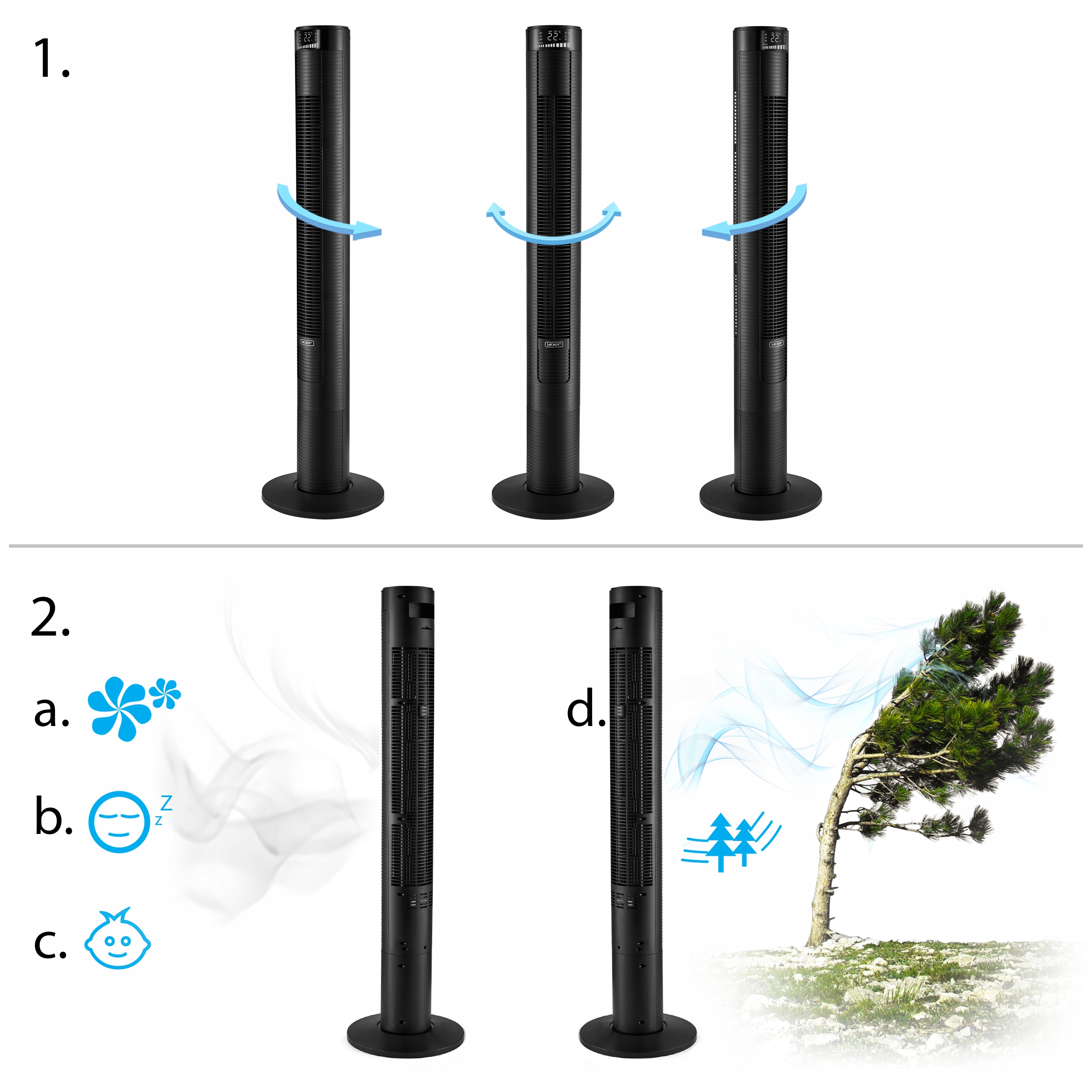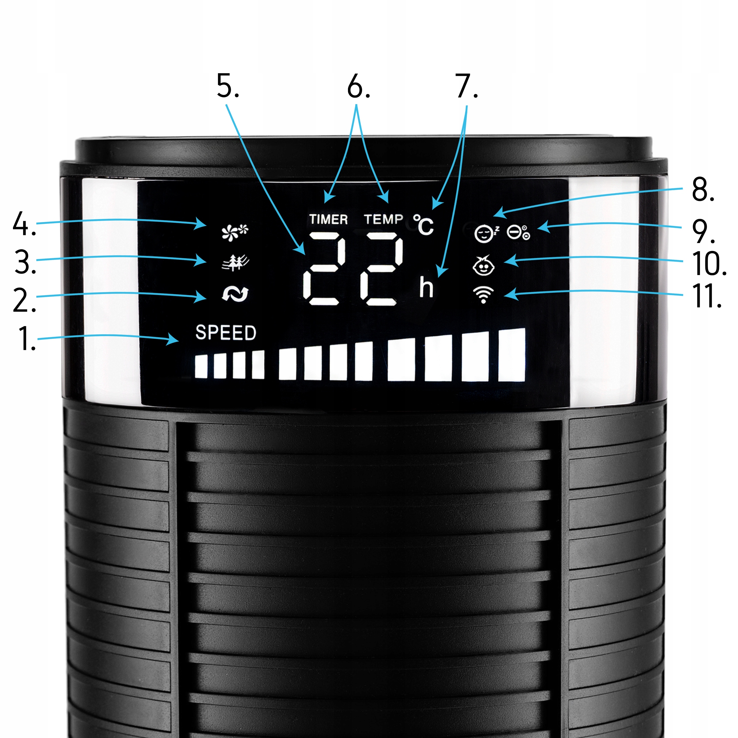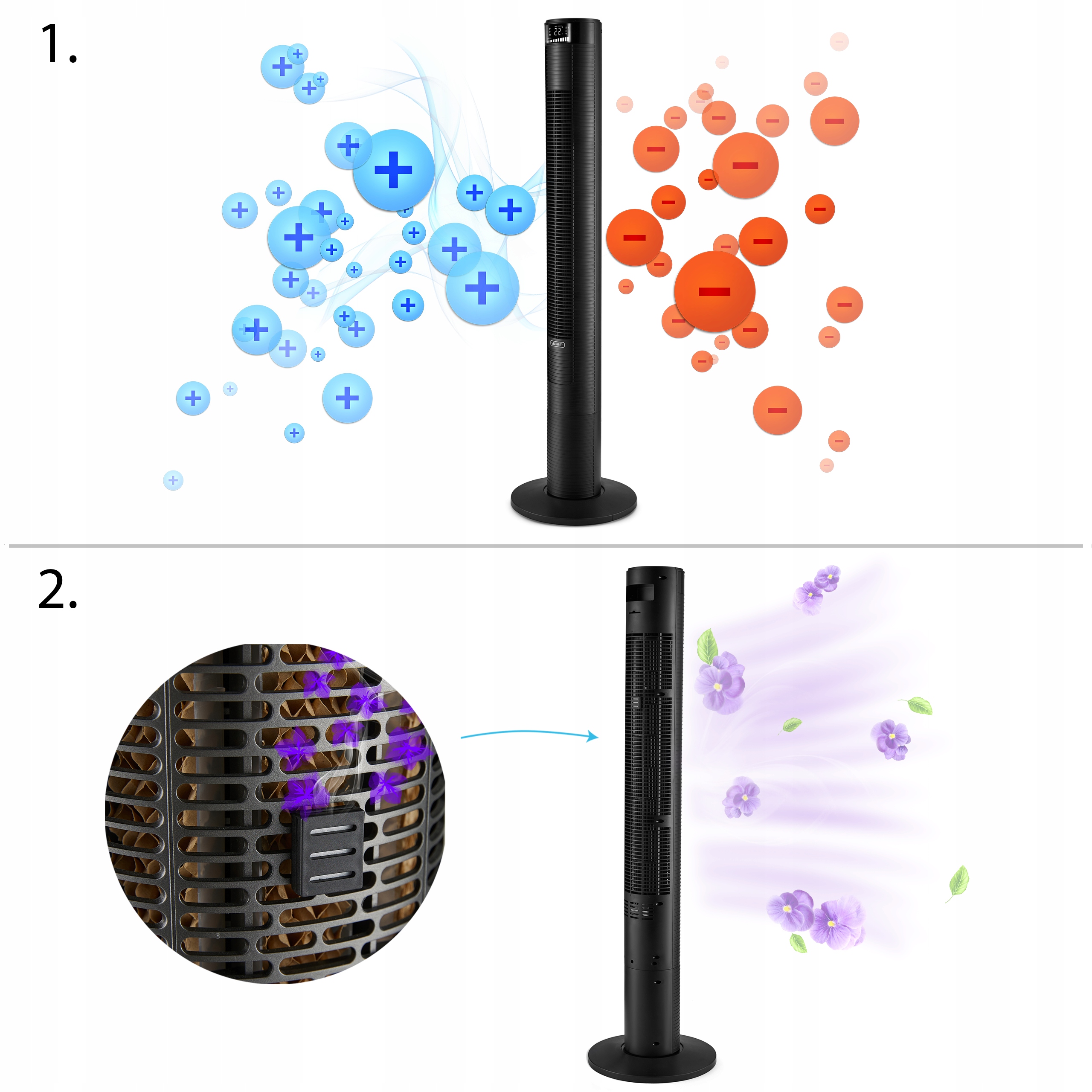 ⭐ 3w1 - chłodzenie, oczyszczanie powietrza, aromaterapia ⭐ Moc 45W ⭐ Zasięg nawiewu 10m ⭐ Cicha praca - 38 dB ⭐ Oscylacja 90° ⭐ Timer 24h/7d ⭐ Wi-Fi ⭐ 3 poziomy prędkości ⭐ 4 tryby nawiewu ⭐ Tryb nocny wyświetlacza ⭐ Wyciszenie dźwięków ⭐ Pilot zdalnego sterowania ⭐ Certyfikat CE ⭐