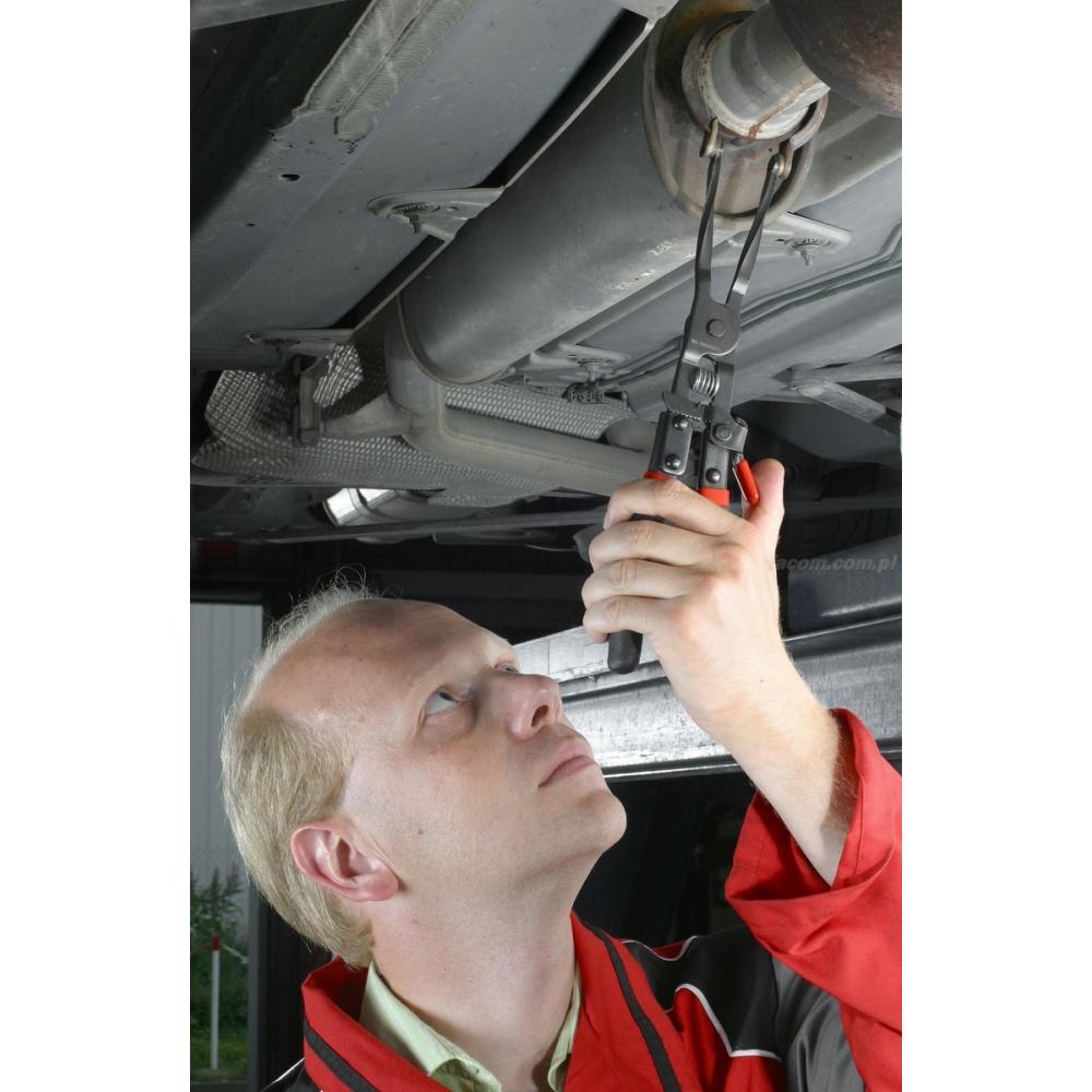Zastosowanie: Szczypce służą do rozszerzania / rozchylania twardych opasek w układach wydechowych samochodów z grupy PSA i innych.