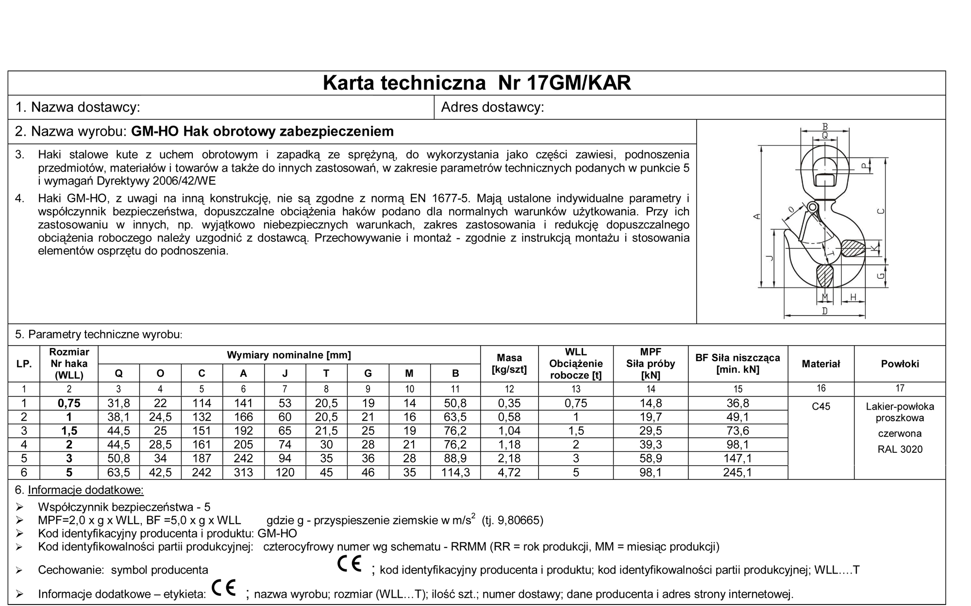 HAK OBROTOWY Z ZABEZPIECZENIEM 750 KG - 1 szt.