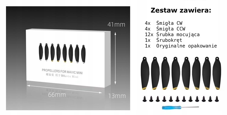 Prezentowany komplet to zestaw 8 śmigieł, wystarczający do wymiany wszystkich śmigieł w Twoim dronie DJI MINI 2.