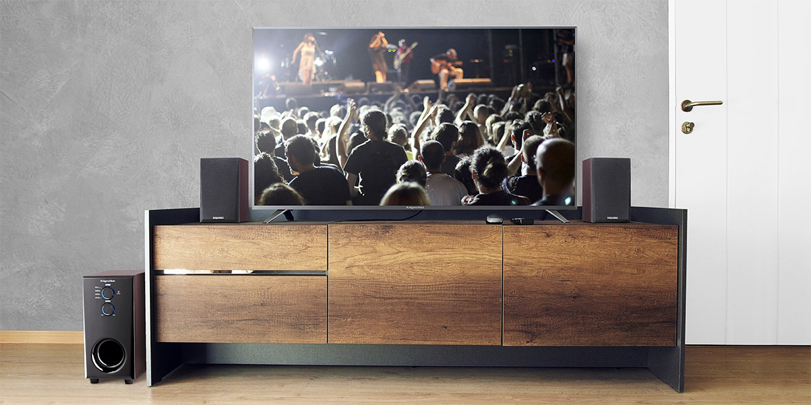 Выберите набор в состав которого входит дополнительно сабвуфер, оснащенный 6-дюймовым НЧ-драйвером.