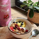 Rześki poranek czy słodki początek dnia? Z Musli Premium Owocowym masz jedno i drugie! Połączenie orzeźwiających malin i truskawek z bajeczną karmelową czekoladą i ukrytymi w niej chrupiącymi migdałami to pożywna mieszanka naturalnych składników; dostarczy Ci białka i cennych witamin! Już od rana ciesz się intrygującym smakiem i nabieraj siły i energii na cały dzień!