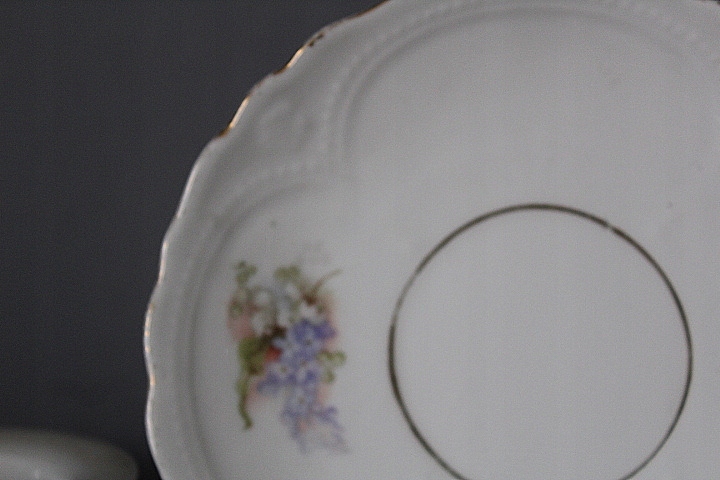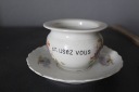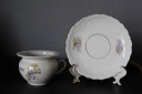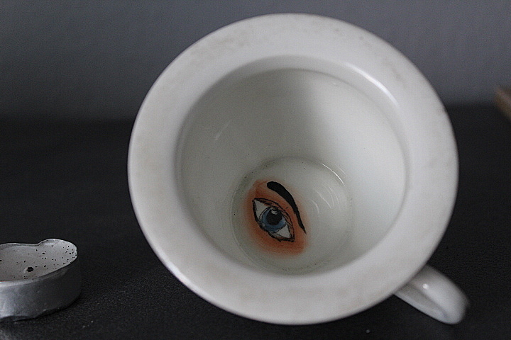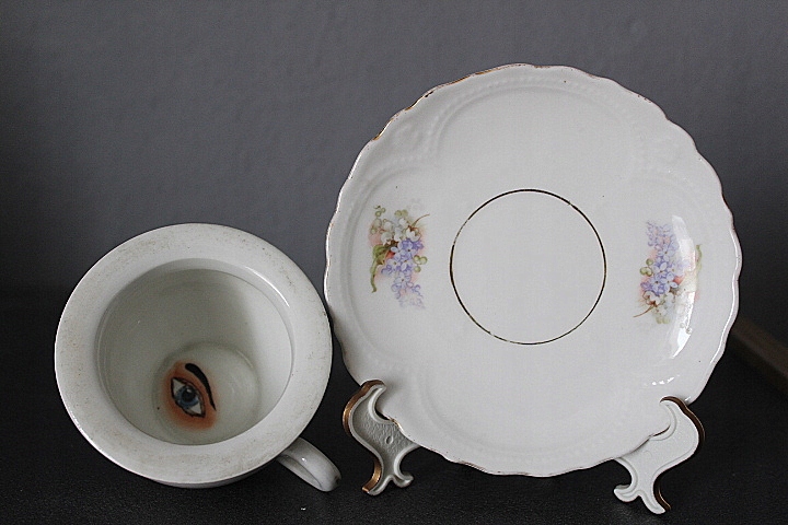 WIEKOWA FILIŻANKA Z OKIEM, BIAŁA GRUBSZA PORCELANA, DOBRANY KOLORYSTYCZNIE PODSTAWEK