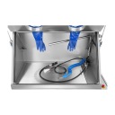 Hydro Power 800 to profesjonalna myjka ciśnieniowa, wykonana z wysokiej jakości stali nierdzewnej o szerokim zastosowaniu. Myjka bardzo dobrze sprawdza się przy regeneracji turbosprężarek oraz przy czyszczeniu silnie zabrudzonych części ze stali, żeliwa, aluminium i innych stopów. Mycie odbywa się w obiegu zamkniętym, przy użyciu płynu myjącego MRS Cleaner Ultra Active podgrzewanego do temperatury 45 st.C. Preparat MRS Cleaner Ultra Active wydobywa się z dyszy pistoletu pod ciśnieniem do 140 Bar, dzięki czemu dokładnie myje trudno dostępne miejsca i silnie zabrudzone części z nagarów, smarów, czy olejów. Zarówno temperatura, jak i płyn zwiększają efektywność mycia. Myjka wyposażona jest w dwa filtry. Posiada stopki regulujące poziom wysokości do 20 cm. Klapę myjki wyposażyliśmy w siłowniki pneumatyczne zwiększające bezpieczeństwo i jakość pracy z myjką. W trakcie mycia możną także stosować zamontowany w myjce pędzel przelotowy lub pistolet z powietrzem sprężonym.Na szybie znajdują się dysze czyszczące , co umożliwia widoczność pracy myjki.