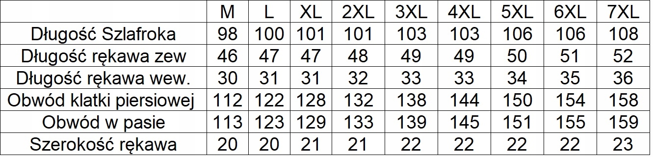 Szlafrok dostępny w wielu rozmiarach oraz dużej gamie kolorów.