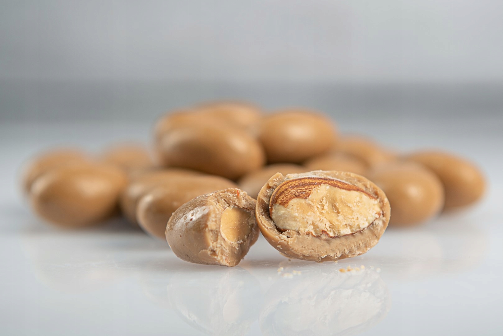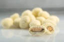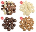 Składniki: czekolada biała i czekolada mleczna o smaku karmelowym 63% (cukier, masło kakaowe, mleko pełne w proszku, masa kakaowa, emulgator: E322 (soja), aromat karmelowy, przyprawy, naturalny aromat waniliowy), migdały 34,7%, syrop glukozowy, polewa/glazura: 0,4% E414, E904, sól.