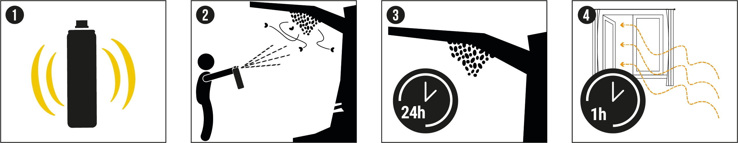 Встряхните перед использованием. Ликвидированные гнезда насекомых обильно опрыскивают около 7 секунд, чтобы хорошо пропитать их продуктом. Основной поток направить в отверстие гнезда. В случае намотки большого гнезда рекомендуется использовать увеличенное время распыление - около 12 секунд.