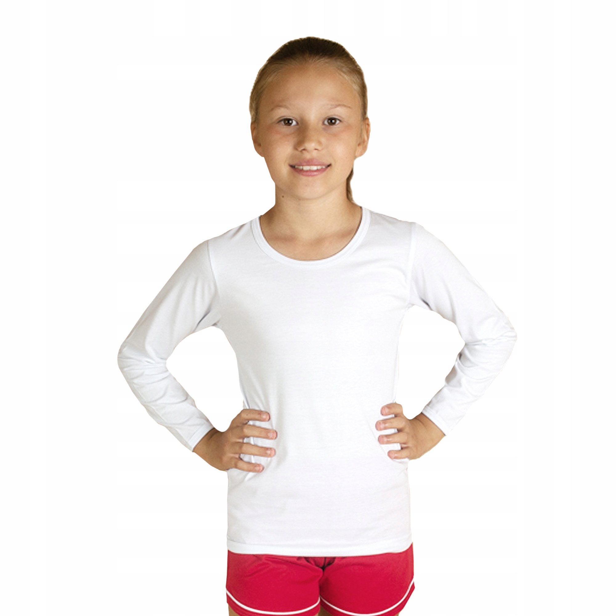 Biała bawełniana podkoszulka z długim rękawem idealna pod bluzkę czy kamizelkę, jako dodatek pod ubranie albo bluzka na cieplejsze dni. Uszyta z czystej 100% bawełny dzięki czemu jest delikatna i miękka w dotyku co daje bardzo duży komfort noszenia. Przy kołnierzyku wykończona piękną lamówką, niezastąpiona w każdej szafie Twojego dziecka.