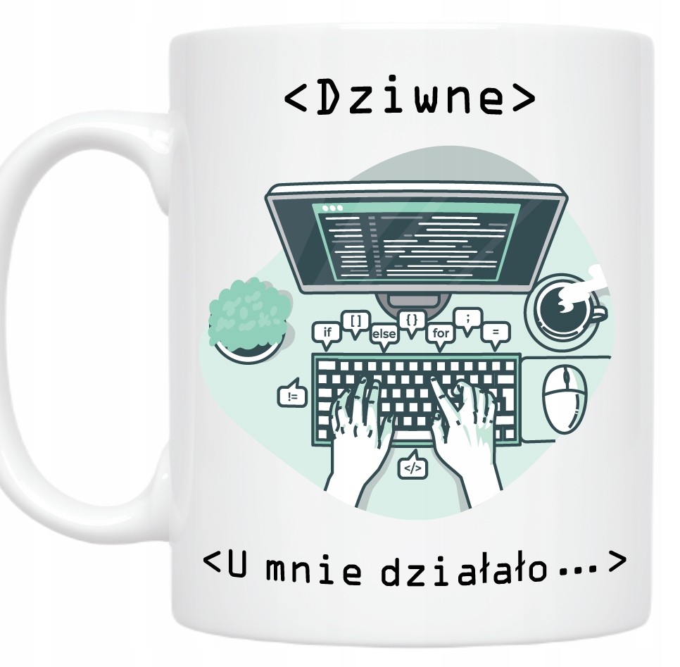 Тематика, тема Kubek PROGRAMISTY INFORMATYKA IT INFORMATYK ze śmiesznym tekstem