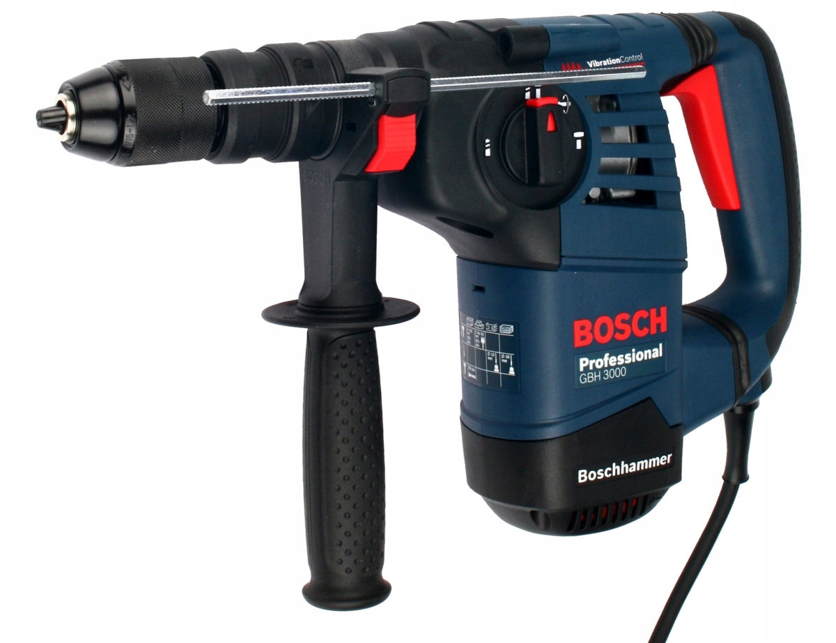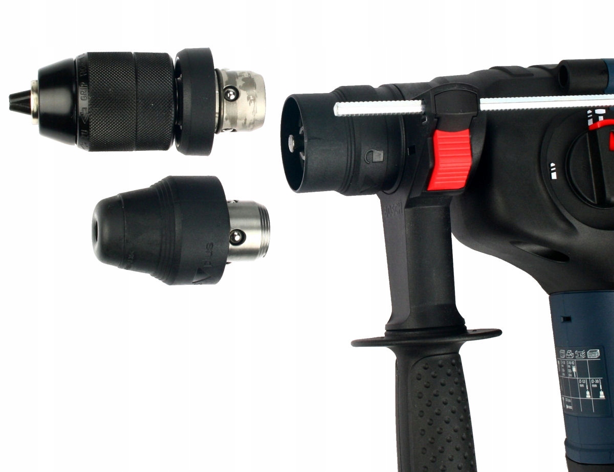 Najszybsza na świecie młotowiertarka klasy 3 kg firmy BOSCH w zestawie z dwoma wymiennymi uchwytami: