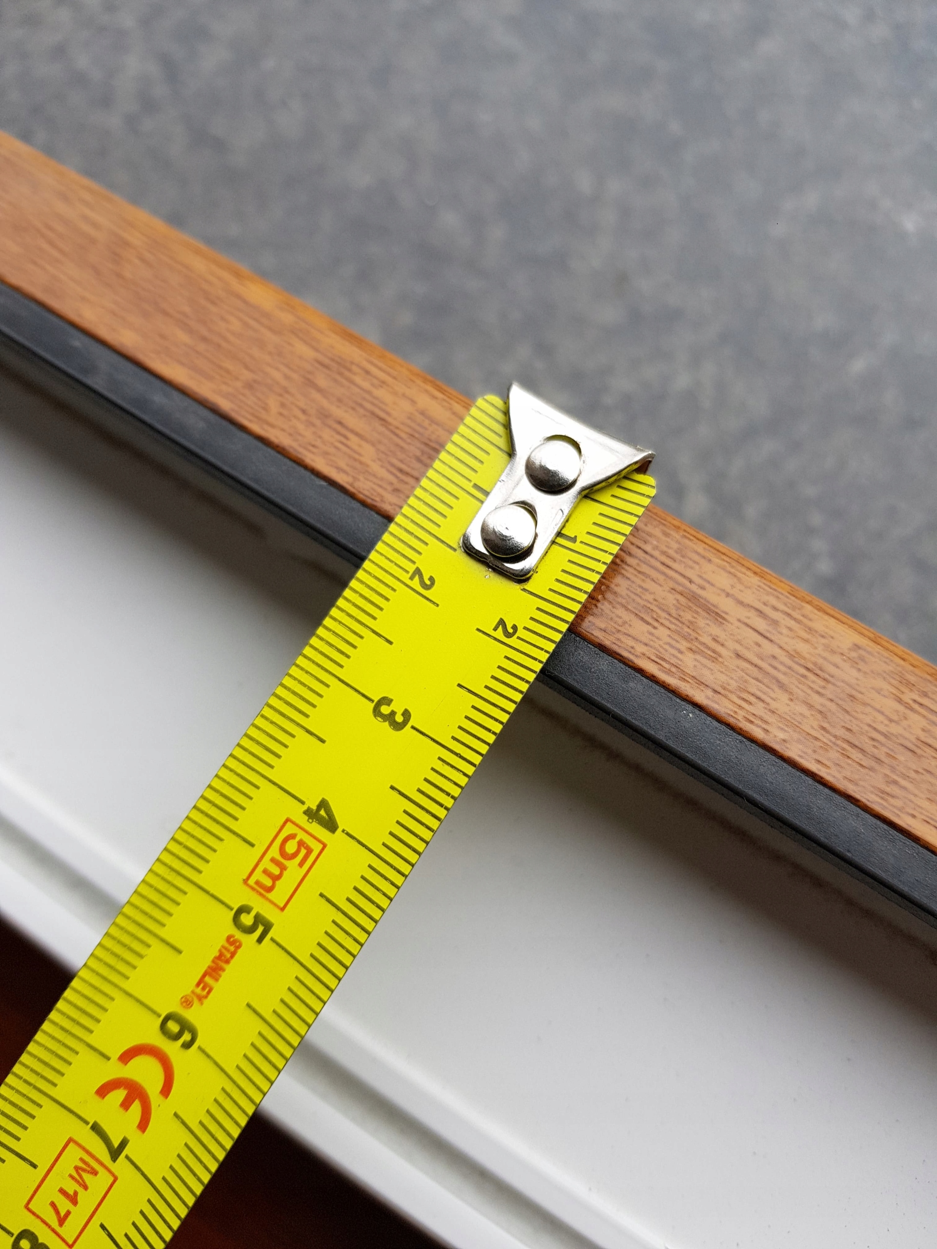 B. Zmierz wysokość ramy otwartego skrzydła okna. (od uszczelki do uszczelki)