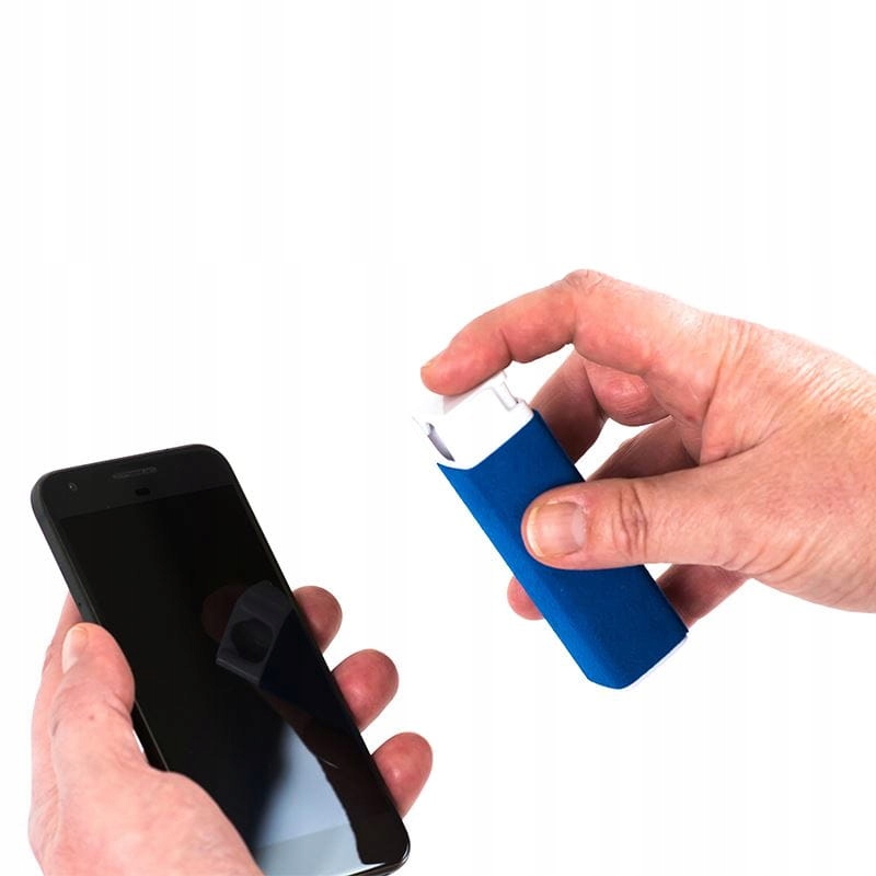 Antybakteryjny płyn w sprayu do czyszczenia ekranów smartfonów, tabletów, komputerów oraz innych urządzeń wyposażonych w wyświetlacz. Spray wraz ze ściereczką w mikrofibry przymocowaną do jego boków tworzy zgraną parę w trosce o czystość Twoich urządzeń. Plastikowa butelka umieszczona wewnątrz ściereczki z mikrofibry, pozwala jednym ruchem spryskać powierzchnię ekranu, po czym przetrzeć ją ściereczką przymocowaną do boków pojemnika. Ściereczkę, gdy się zabrudzi można przepłukać w ciepłej wodzie. Pojemność wynosząca 20 ml starcza na ok. 220 przetarć ekranu.