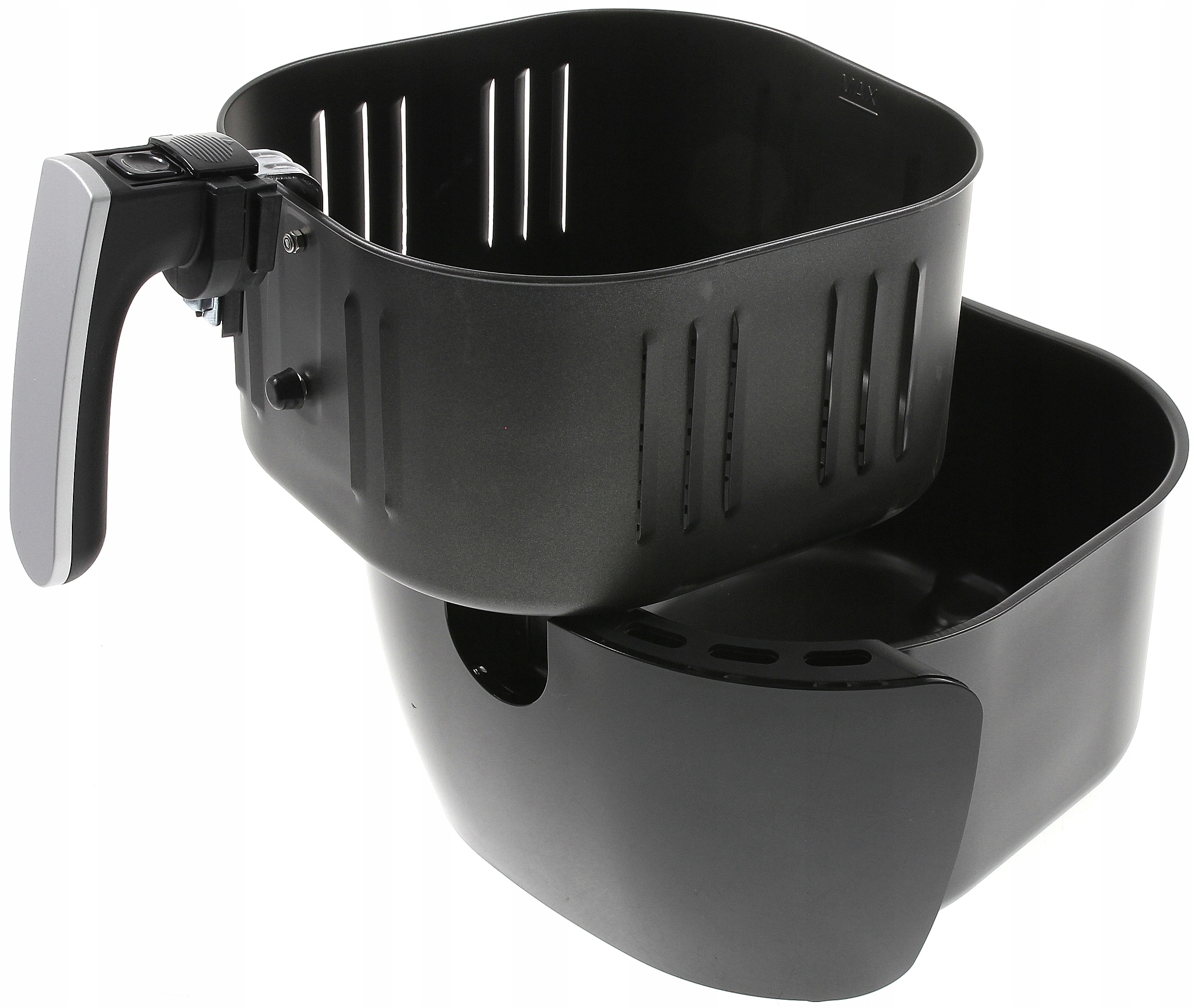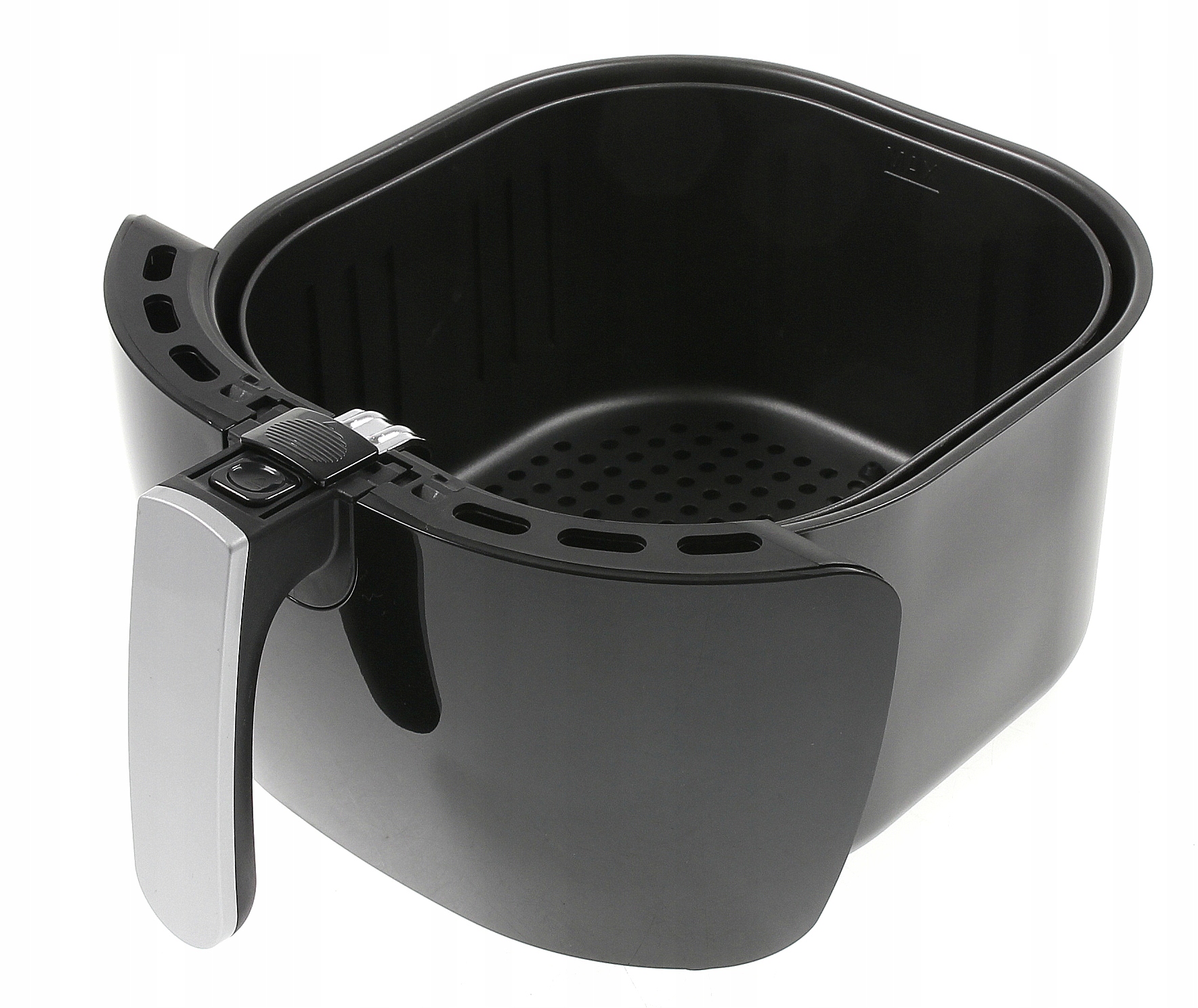 Ручка для защиты от ожогов с кнопкой выпуска защелки, нажмите белая защелка, а затем нажмите кнопку выпуска, это позволит легко снять внутреннюю блюдо и корзина.