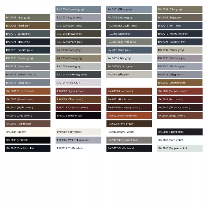 RAL: 7000/7001/7002/7003/7004/7005/7006/7008