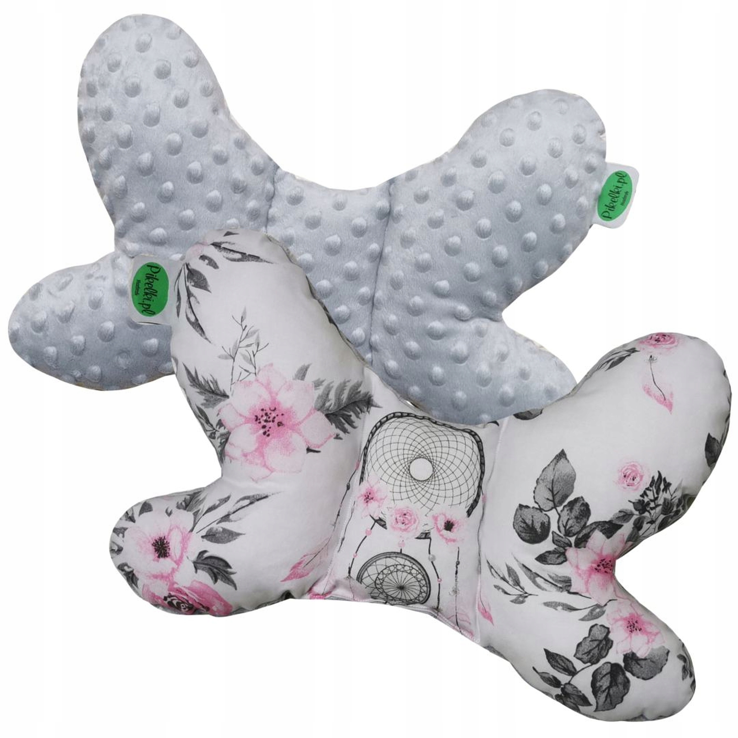 Poduszka motylek jest tak zaprojektowana, żeby główce naszego maleństwa było wygodnie i przede wszystkim bezpiecznie. Jej grubsze skrzydełka i płytszy środek powoduje, że główka nie ucieka na boki, zapewniając najwyższy komfort podczas zabawy, spacerów w wózku, czy jazdy samochodem w foteliku. Szerszy środek daje stabilność i efekt poduszki antywstrząsowej.