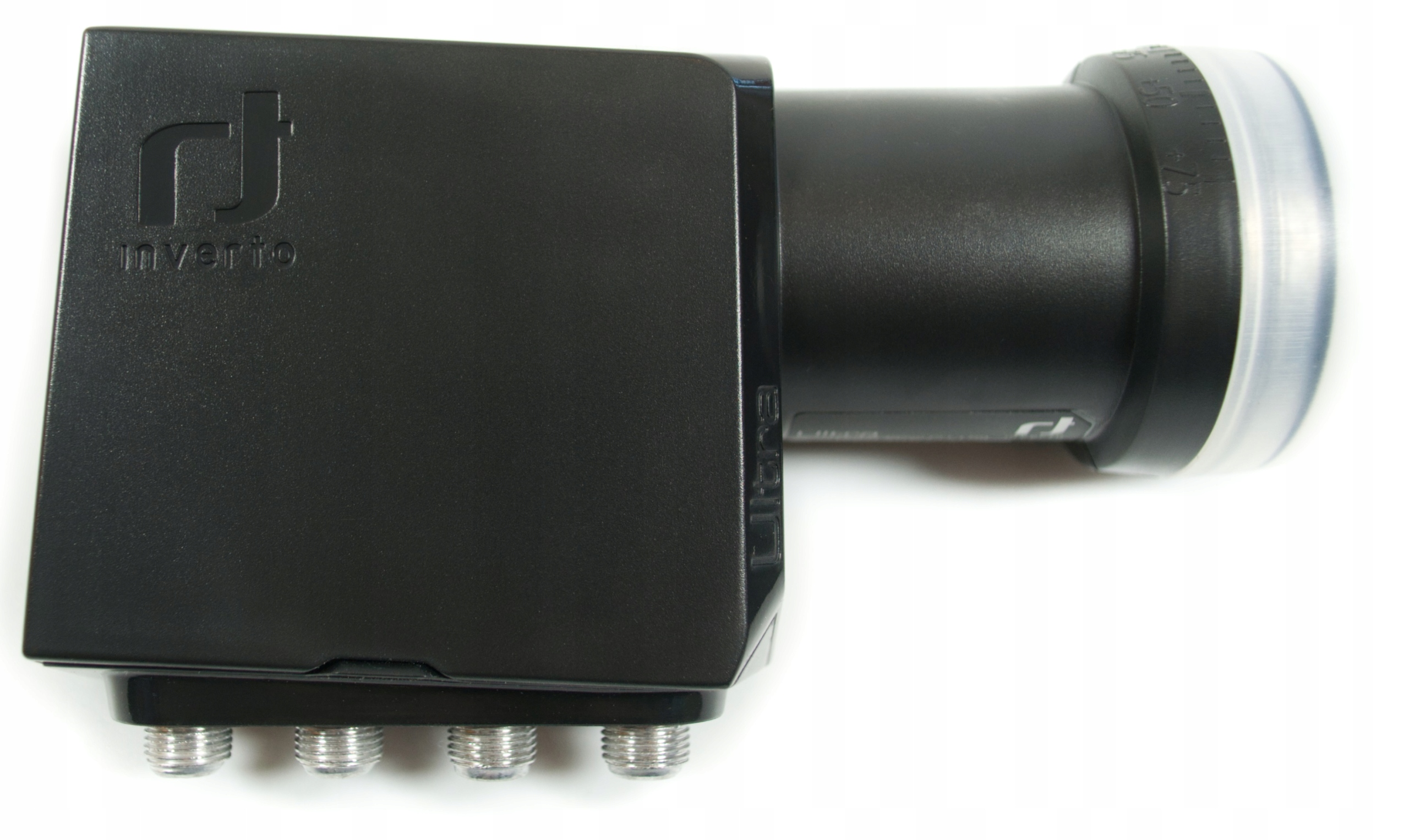 Wysokiej jakości poczwórny konwerter luksemburskiej marki Inverto. Konwerter typu Quad służy do odbioru sygnału z jednego satelity przez cztery niezależne tunery. Posiada osłonę przeciwdeszczową.