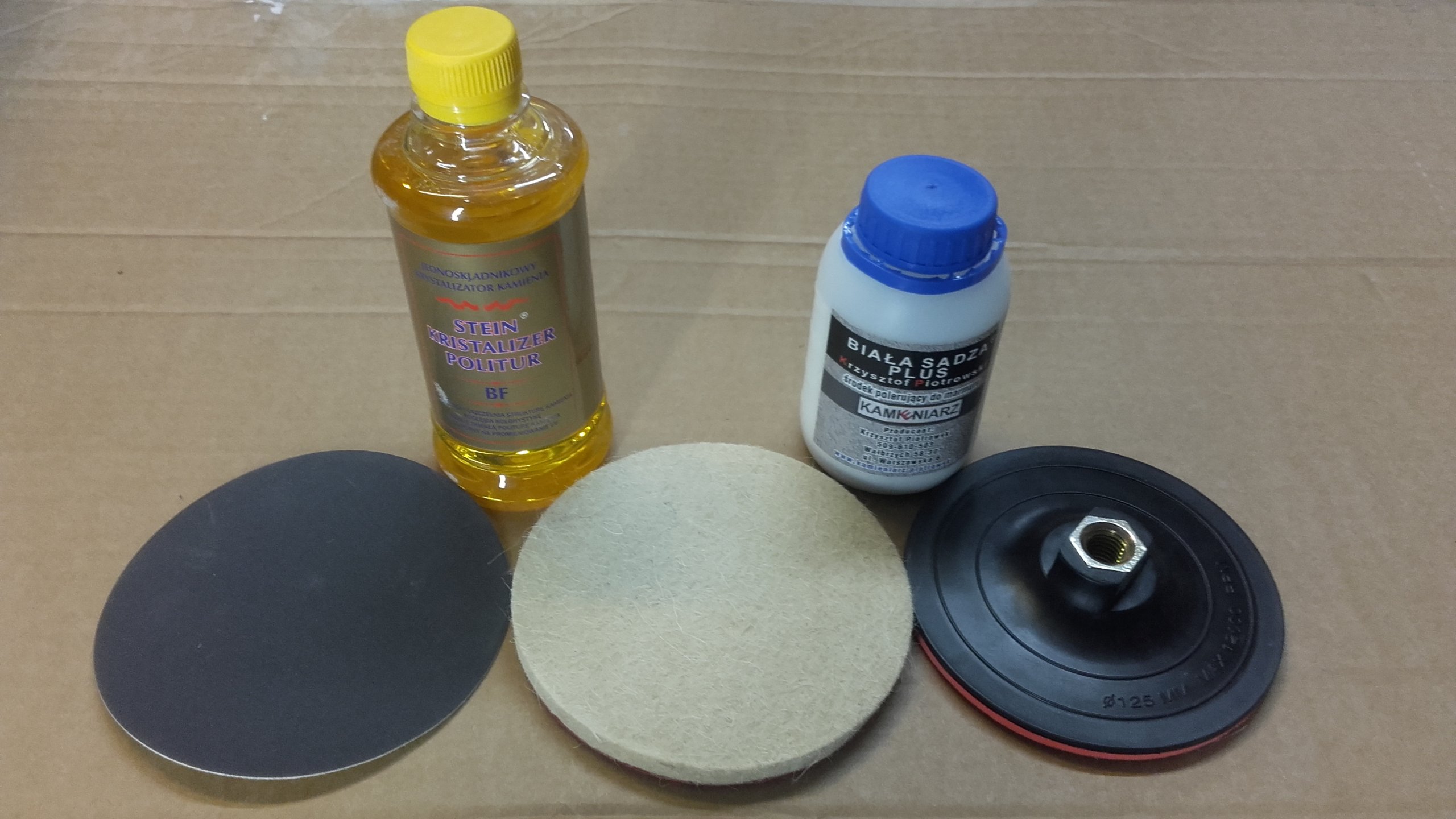 Zestaw do polerowania marmuru w skład zestawu wchodzi ;