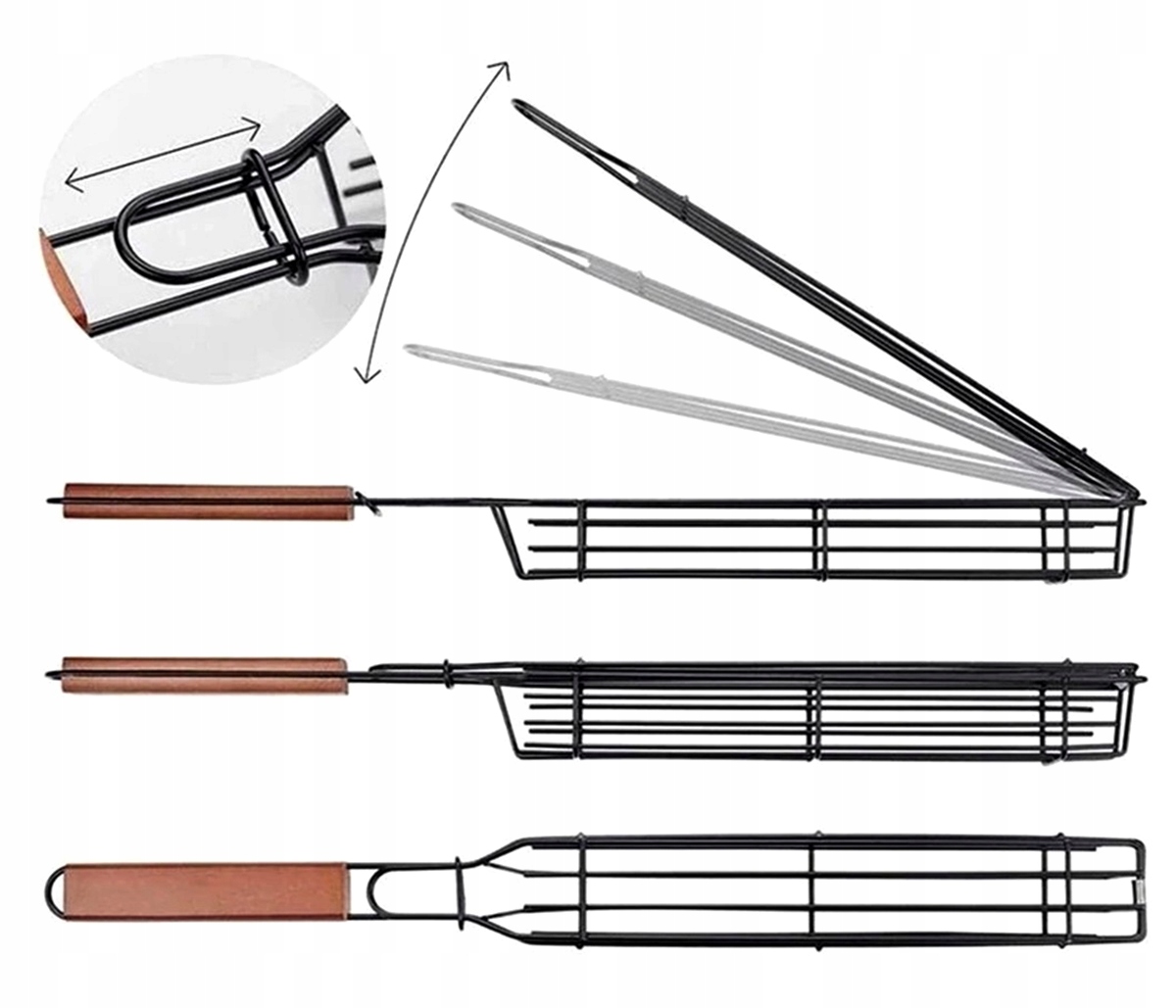 Zamykany koszyk do grilowania warzyw, ryb i mięsa. Doskonały gadżet dla wszystkich miłośników grillowania. Wyposażony w specjalną powłokę non-stick, dzięki której potrawy nie przywierają do koszyka podczas grillowania. Zastosowanie szerokich otworów umożliwia swobodną cyrkulację powietrza i dokładne grillowanie. Długi uchwyt umożliwia wygodne obracanie potraw bez ryzyka poparzenia.