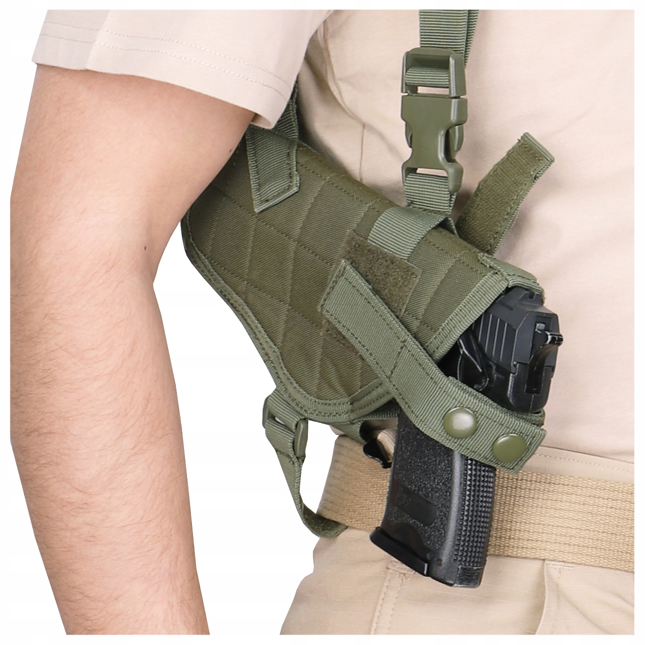 UWAGA! Przedmiotem oferty jest Kabura Operacyjna na szelkach w kolorze Olive. Pozostałe elementy służą wizualizacji funkcjonalności.