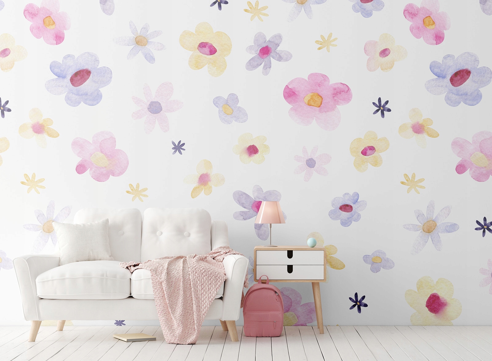Фотообои маленькие цветы розово-фиолетово-желтые акварели