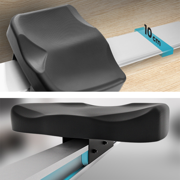 Miękkie, anatomicznie ukształtowane siodełko, zapewnia wygodę nawet podczas najbardziej intensywnych ćwiczeń, a jego optymalne wymiary umożliwiają przyjęcie stabilnej pozycji w czasie wiosłowania. Łożyskowane rolki zapewniają płynny ruch siedziska wzdłuż prowadnicy.