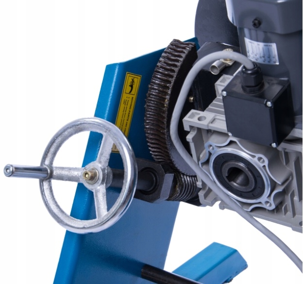 Поворотный диск может быть наклонена в диапазоне 0 -90°. Он оснащен монтажными канавками, в которых можно установить челюсти и ручки. Устройство имеет возможность выбора направления вращения поворотного диска и регулировки скорости вращающейся. Он оснащен педалью управления (start-stop) для управления работой.