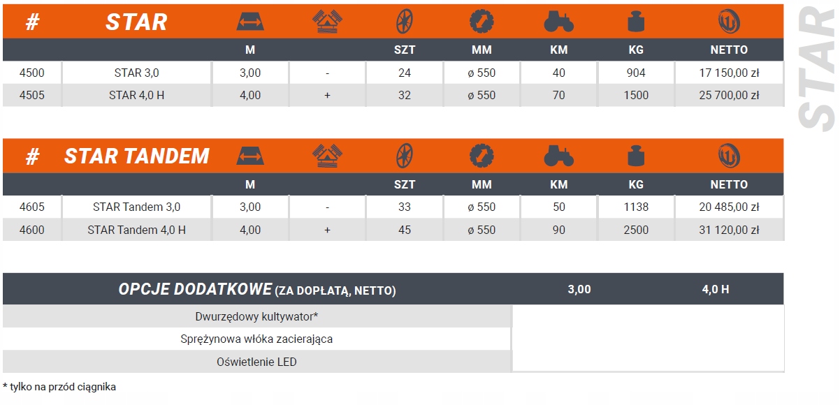 Do uprawy przedsiewnej wymagane jest: dobre wyrównanie, kruszenie przy dobrym zagęszczaniu (ubijaniu) na różnorodnych glebach. Wał STAR jest idealnym narzędziem do tego typu zadań. Ciężkie żeliwne koła wału zachodzą między siebie aby samoczynnie się oczyszczać w trakcie pracy. Wał STAR wyposażony jest naprzemiennie w koła żeliwne 550 mm i 500 mm. Zróżnicowana wielkość kół sprawia, że gleba zagęszczana jest dwuwarstwowo. W wersji STAR TANDEM koła są jednej średnicy (fi 550 mm) jednak rozmieszczone są w dwóch rzędach dzięki czemu prędkość pracy może być większa.